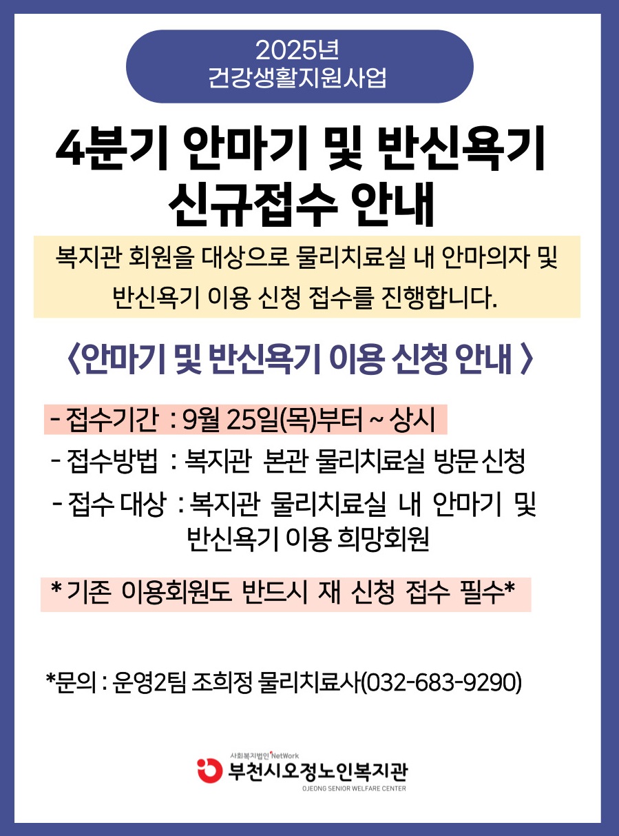 4분기 안마의자 및 반신욕 이용 신청 안내