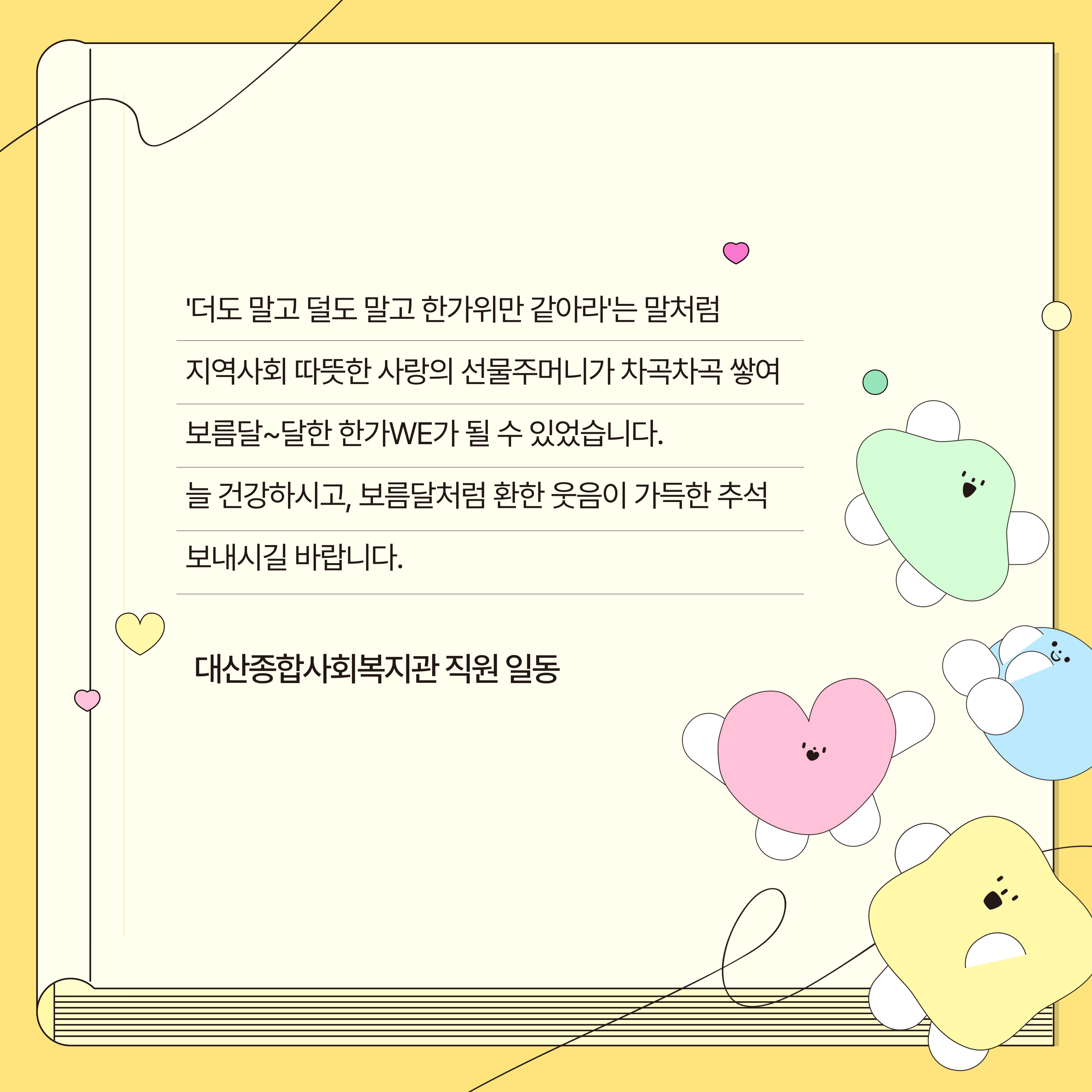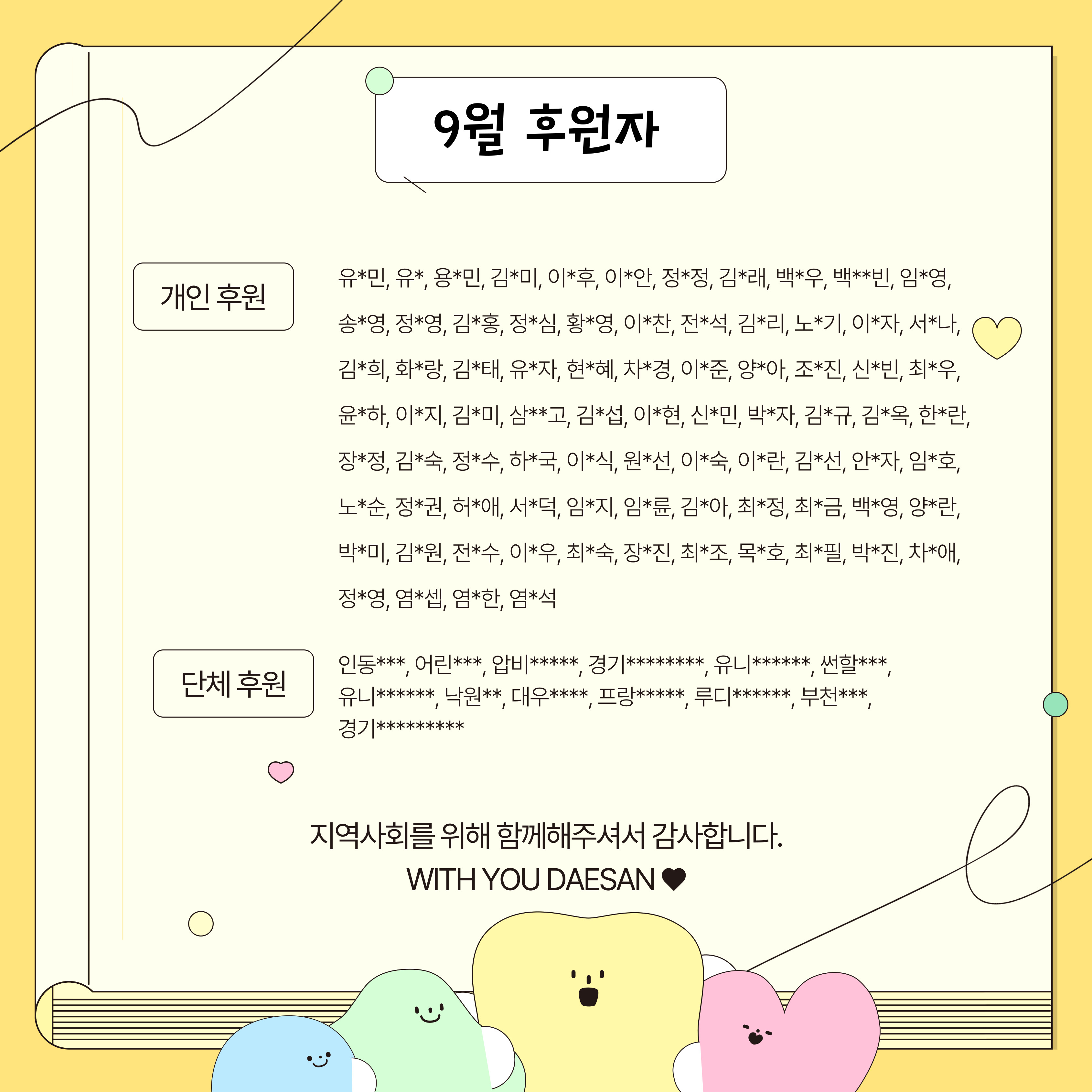 2025년 9월 대산종합사회복지관 후원에 감사드립니다.