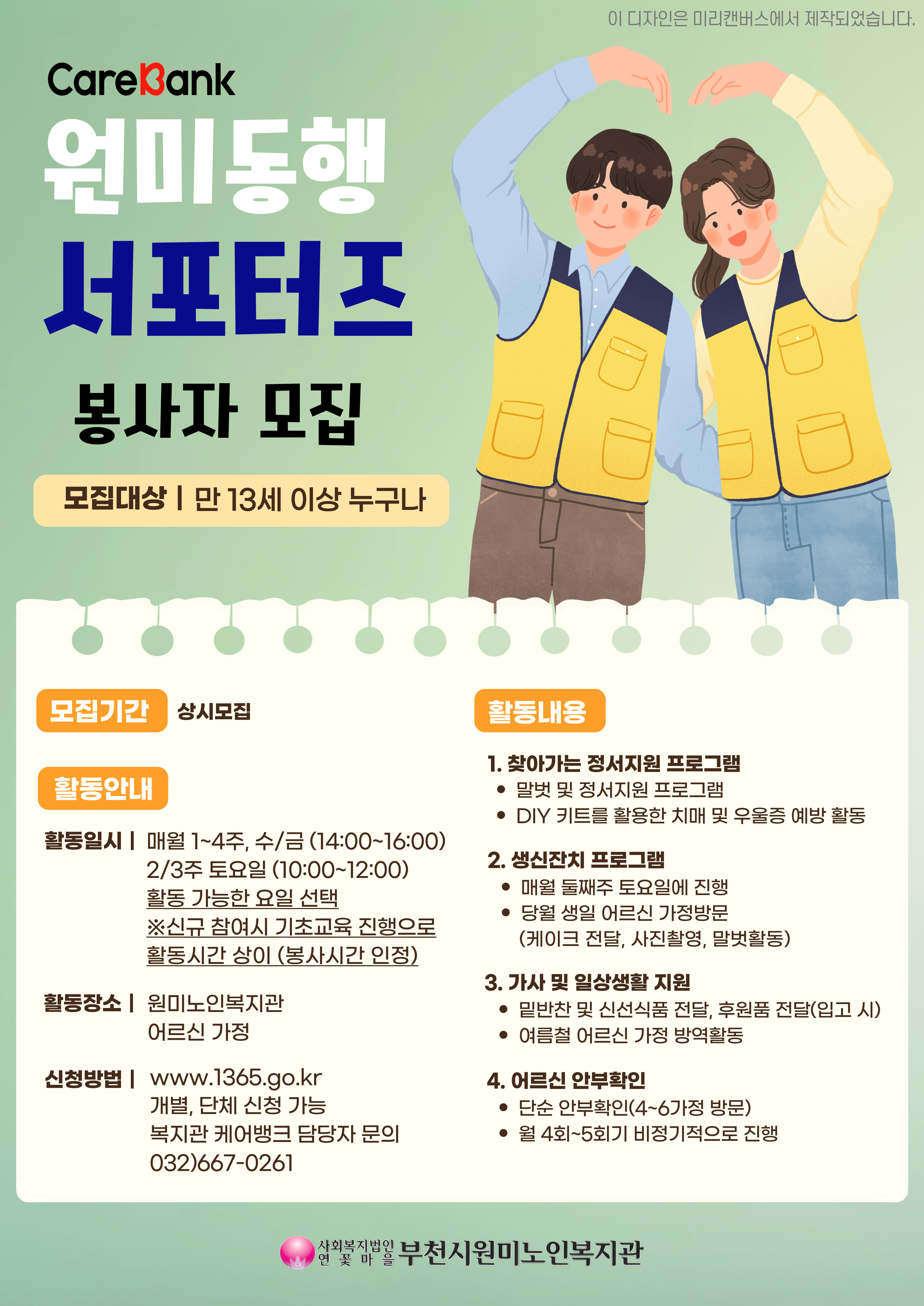 2025년 어르신 정서지원, 원미동행 서포터즈 봉사자 모집