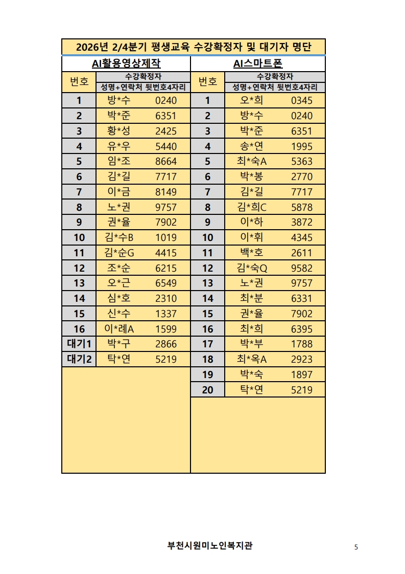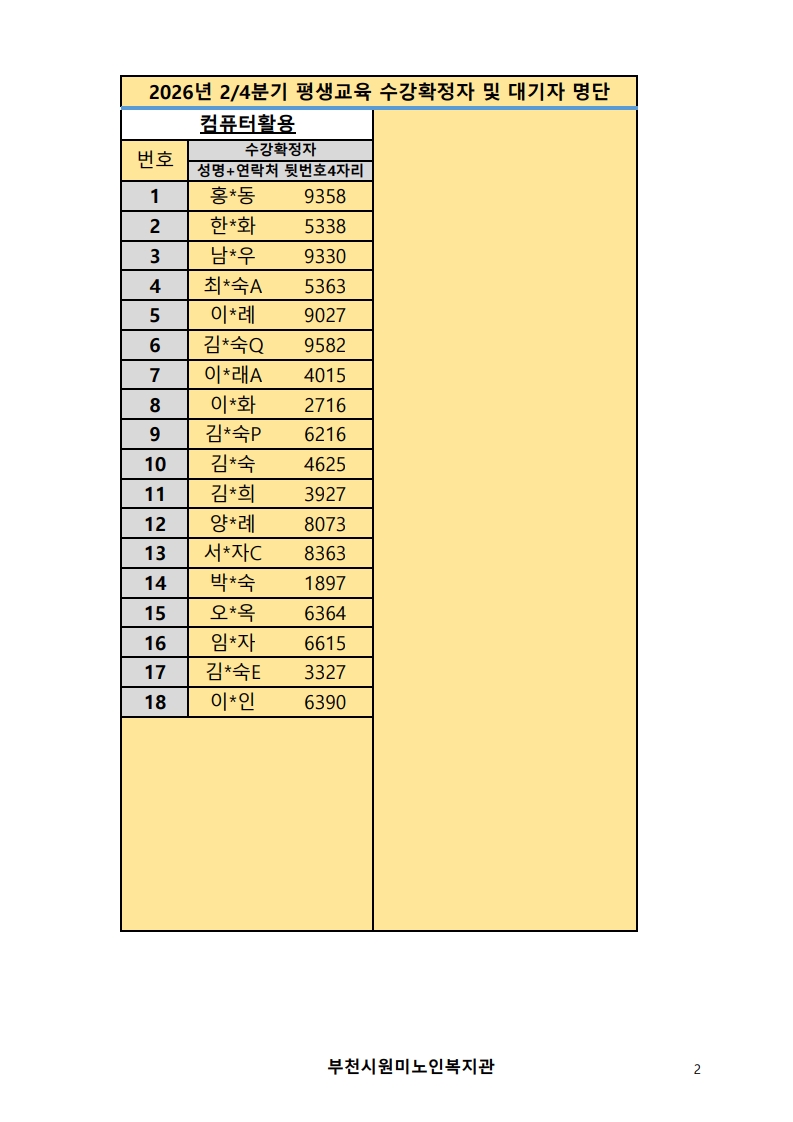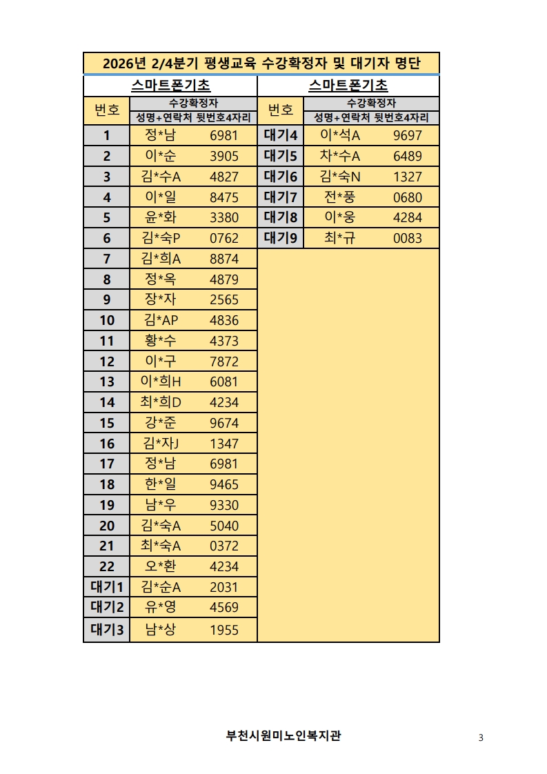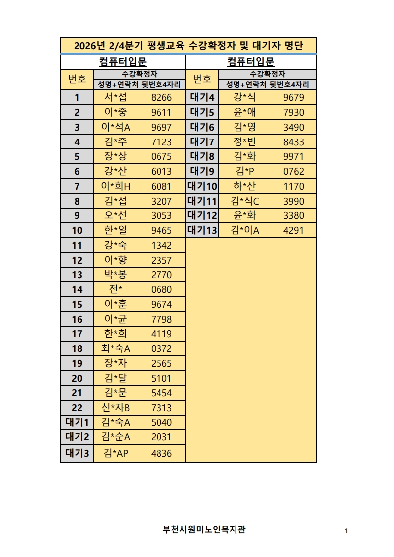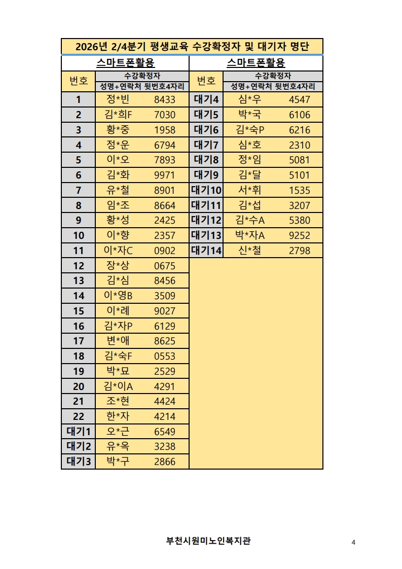 2026년 평생교육 2/4분기 프로그램 수강신청 결과 발표