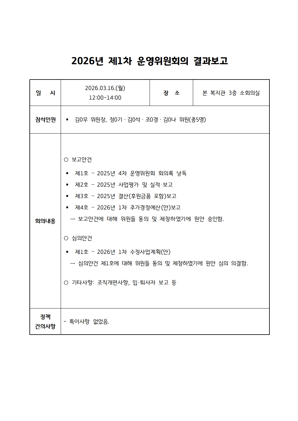 [상동] 2026년 제1차 운영위원회의 결과보고