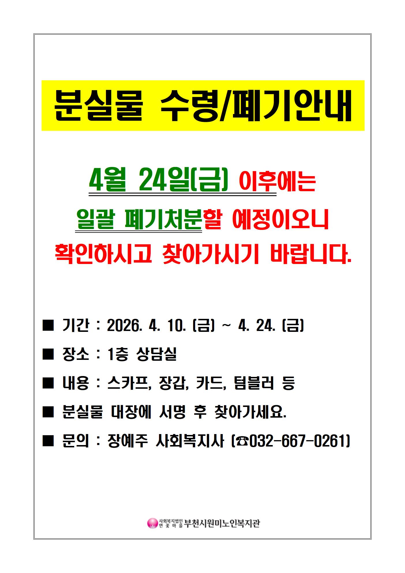 분실물 수령/폐기 안내
