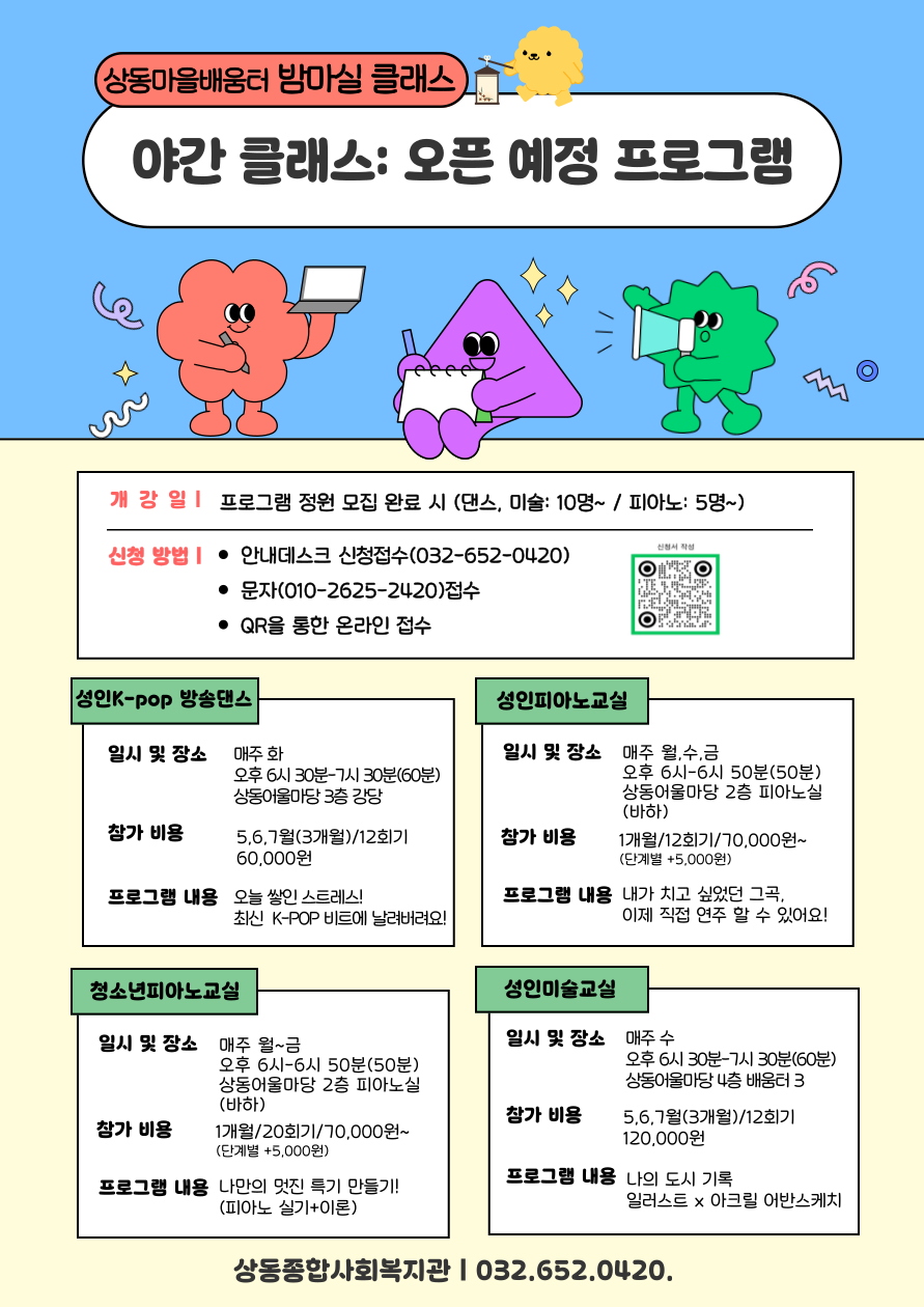 2026년 교육문화프로그램 야간 오픈 예정 프로그램