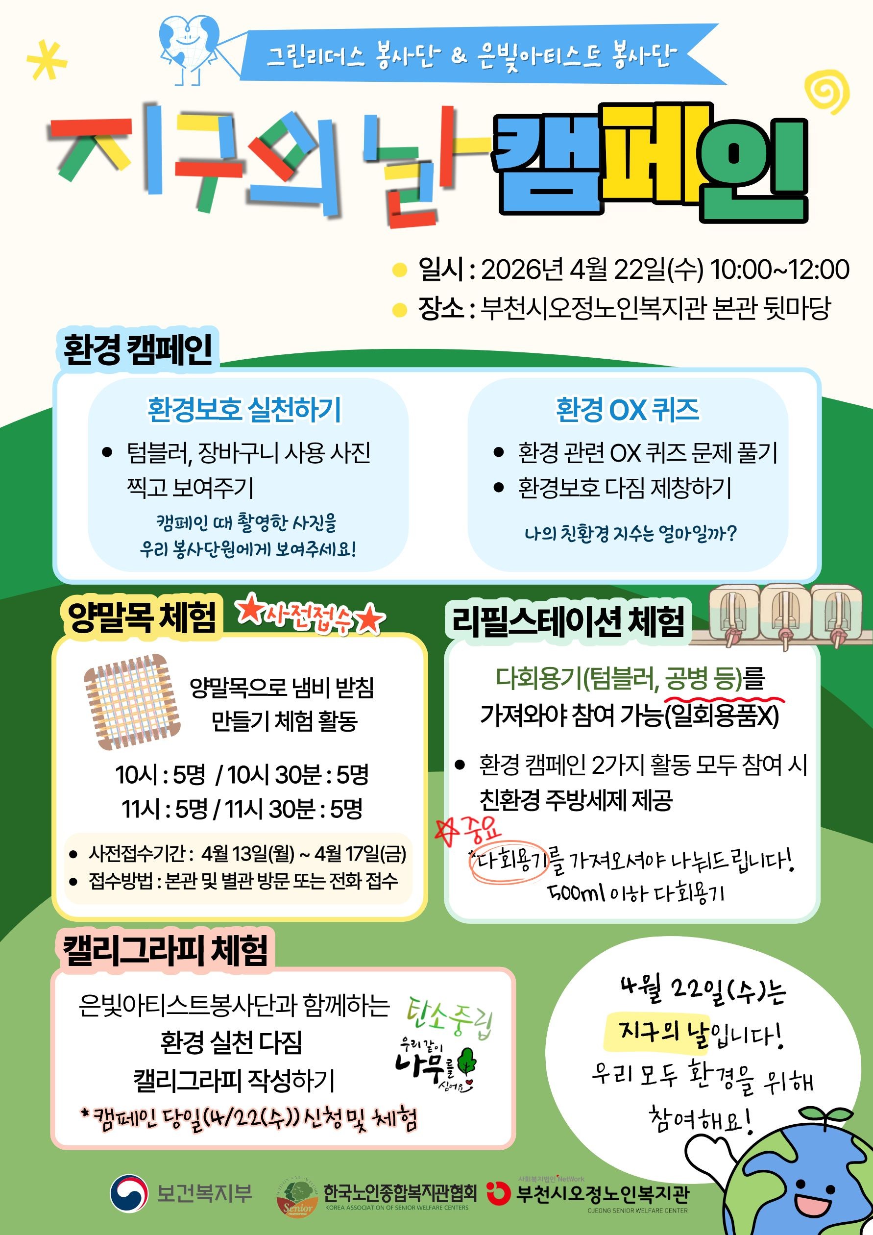 ※ 캠페인 당일(4/22(수)) 신청 및 체험할 수 있습니다!