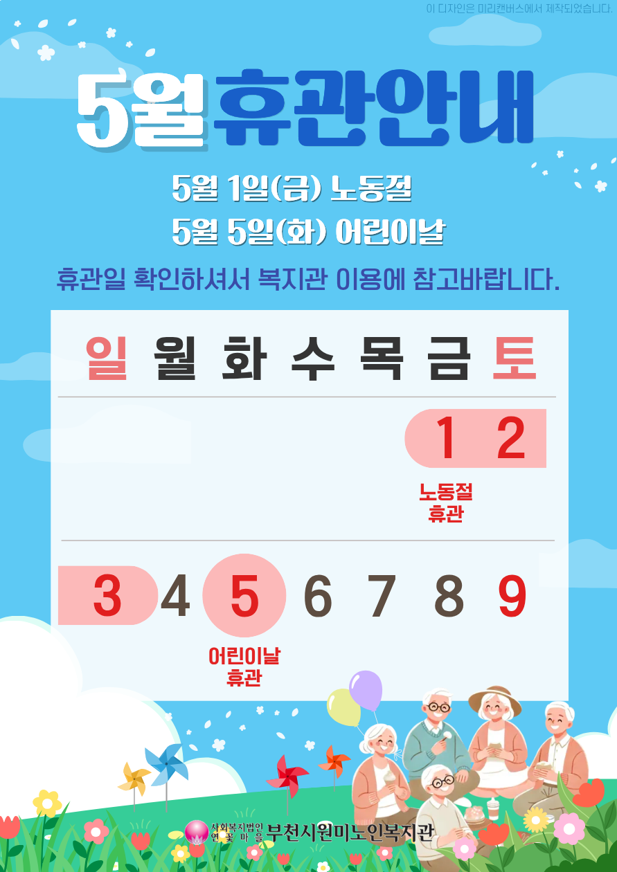 원미노인복지관 5월 휴관 안내