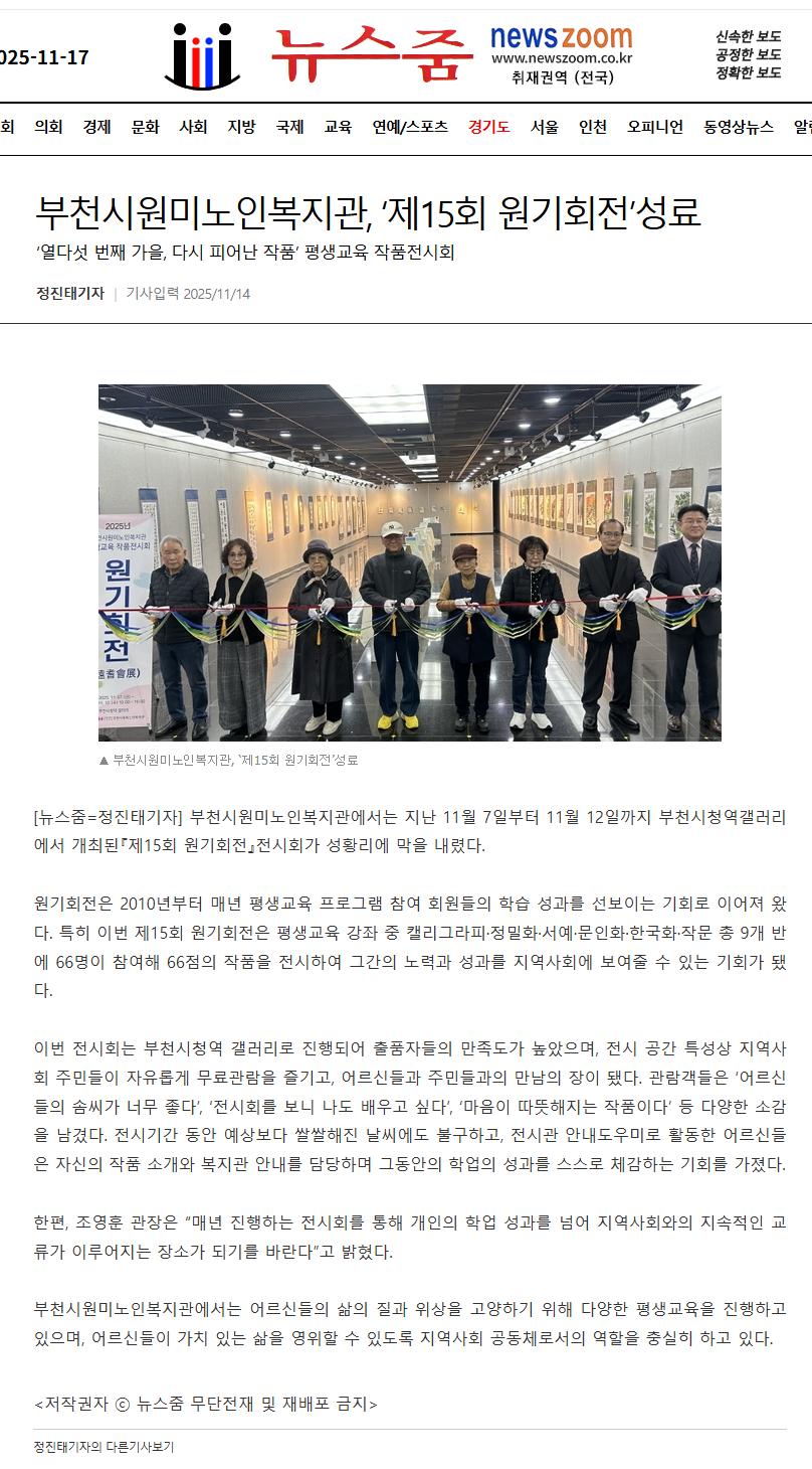 [IBS뉴스] 부천시오정노인복지관, 2025 어르신 작...