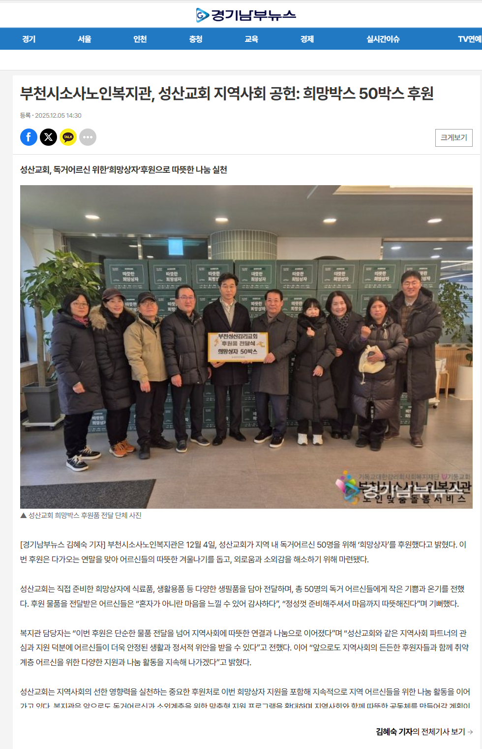 [경기남부뉴스]성산교회, 독거어르신 위한 희망상자 후원