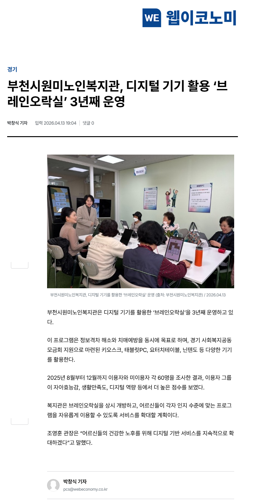 [웹이코노미] 부천시원미노인복지관, 디지털 기기 활용 '브레인 오락실' 3년째 운영