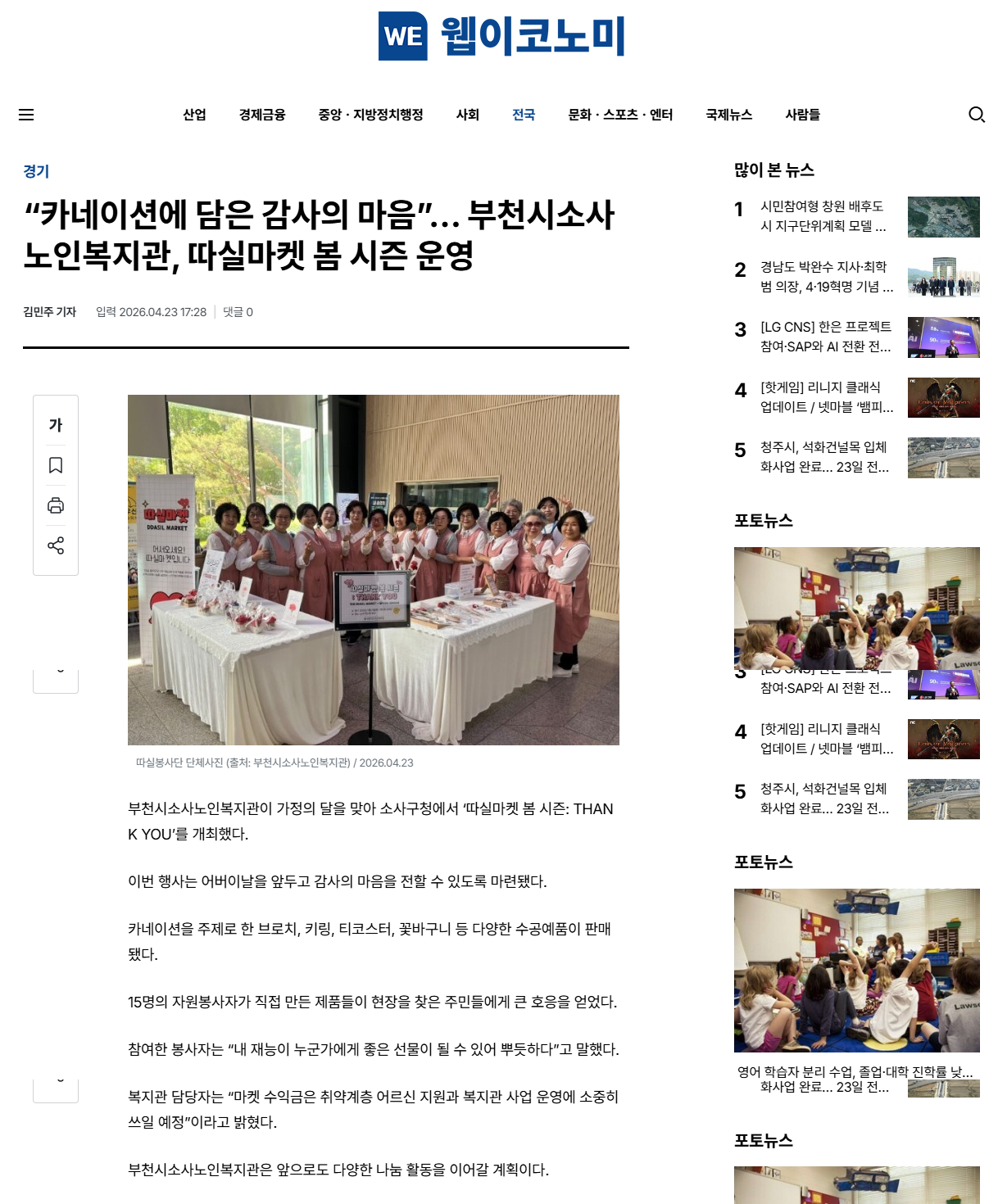 [중부시사신문]부천시소사노인복지관, 따실마켓 봄 시즌 ...
