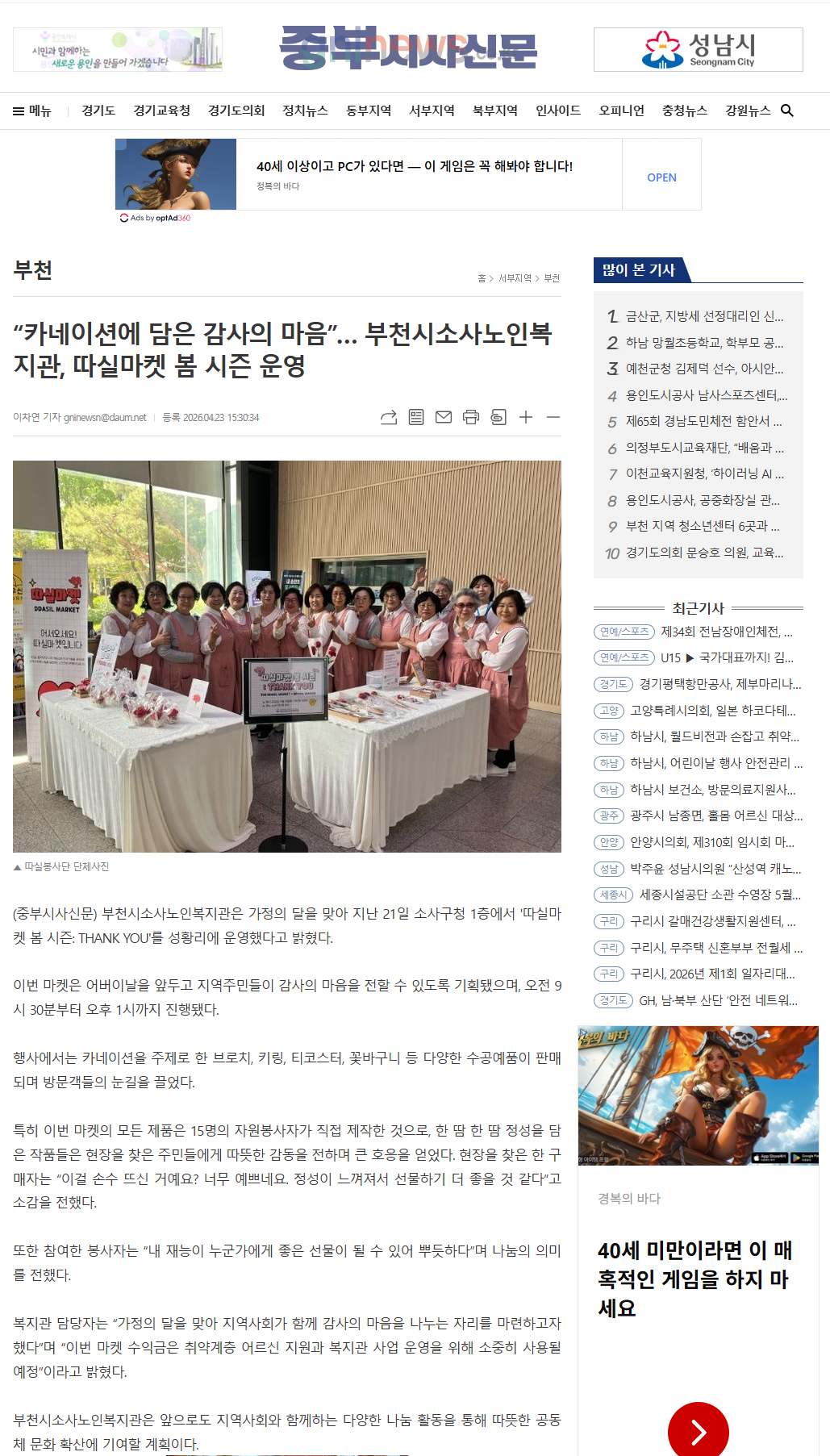 [중부시사신문]부천시소사노인복지관, 따실마켓 봄 시즌 운영