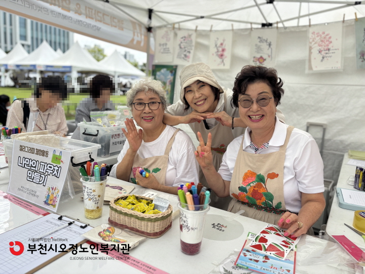 은빛하모니카의 멋진 공연과 "캘리그라피&친환경부스"를 운영한 은빛아티스트 봉사단의 활동으로 부천시민에게 복지관과 어르신들의 다양한 여가활동을 알기고 함께하는 시간을 가졌습니다.