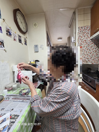 이번 돌봄활동은 "주택 화재 안전점검, 생신잔치, 곰돌이 가죽지갑 만들기“ 정서지원 프로그램을 진행했습니다.