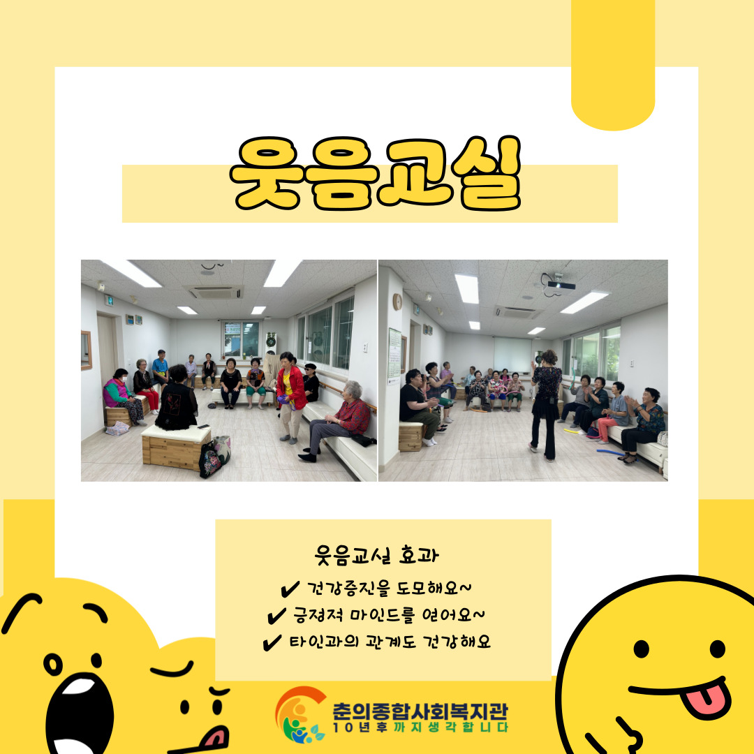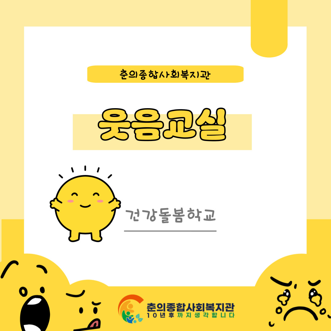 웃음을 통해 마음과 몸을 건강하게 만들고 싶은 분들은 춘의종합사회복지관으로 연락주세요 ~