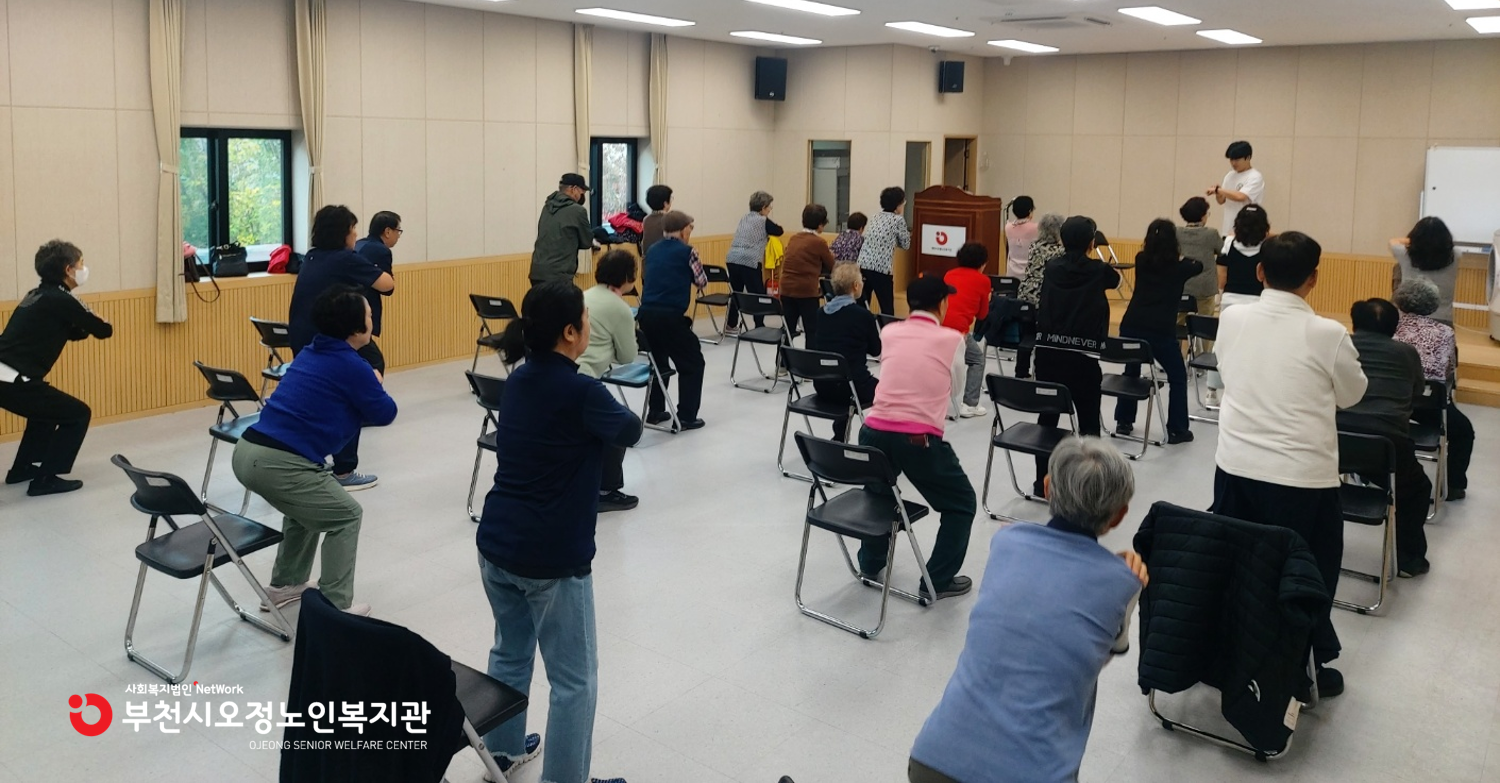 노년기 어르신들의 근력, 심폐지구력, 평형성, 유연성 및 협응력 등 노년기에 필수적인 체력증진을 통해 건강한 노년활동을 도모하기 위해 운영됩니다.