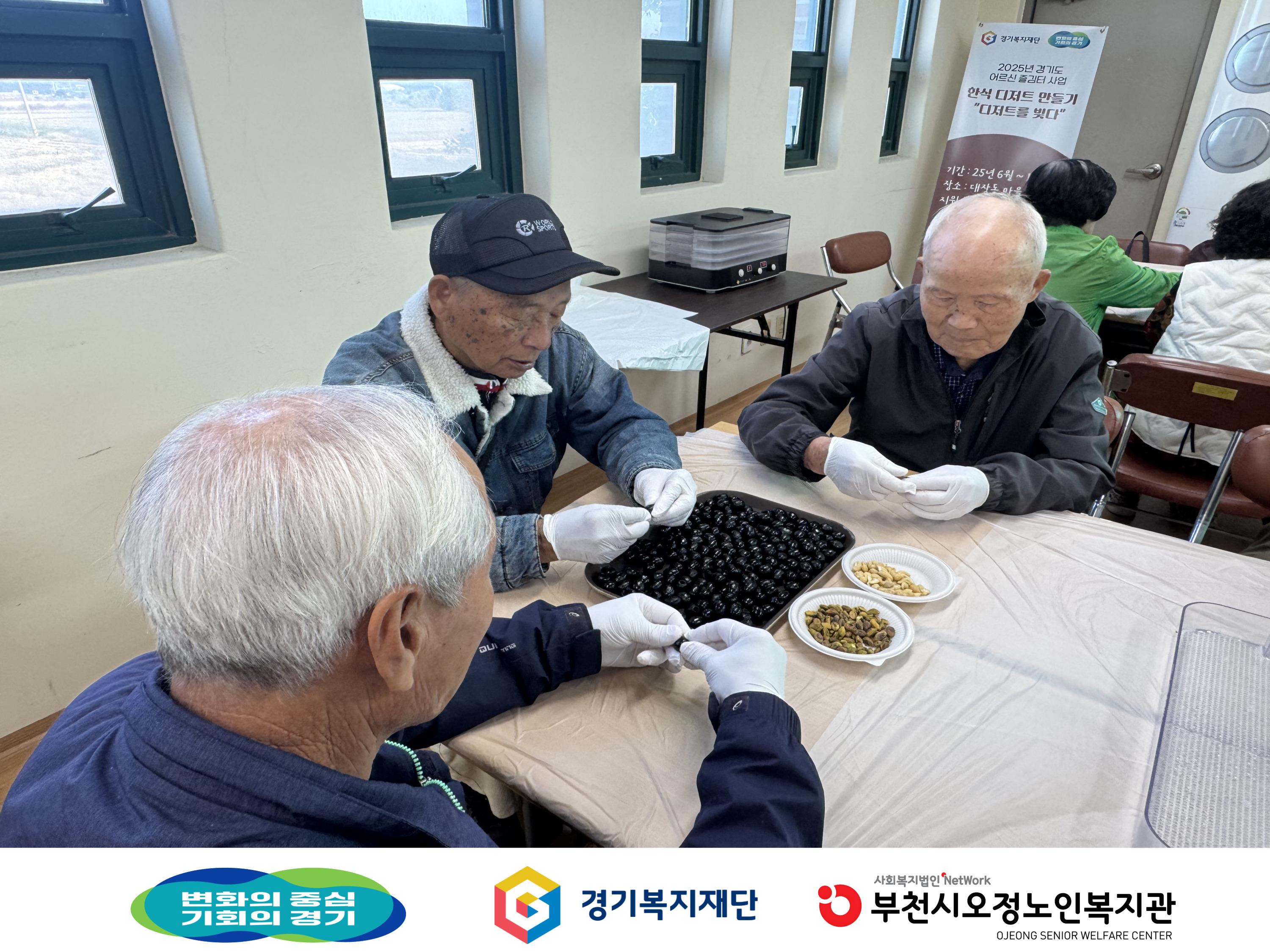 2025년 경기도 어르신 즐김터 사업 한식 디저트 만들기 '디저트를 빚다' 올리브 정과 만들기 진행