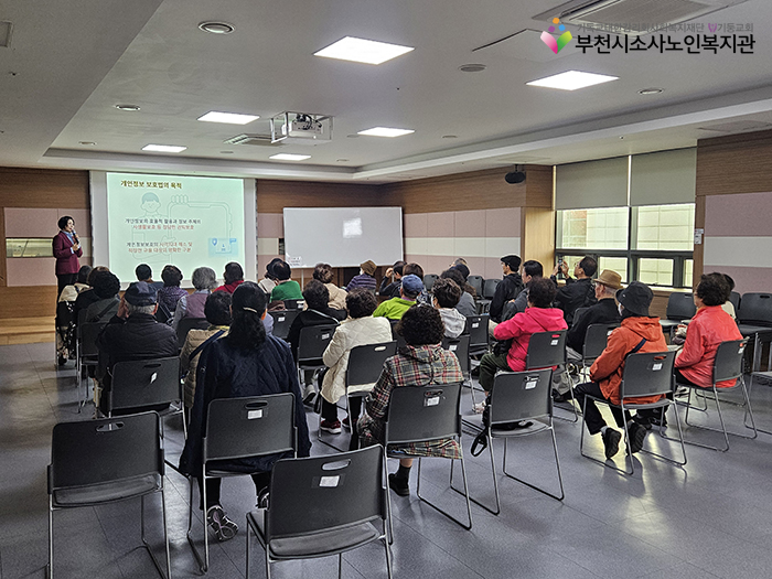 부천시소사노인복지관에서는 어르신들의 개인정보 보호 인식을 높이고, 일상생활 속 개인정보 유출과 각종 사이버 사기 피해를 예방하기 위해 ‘개인정보 보호교육’을 실시하였습니다.