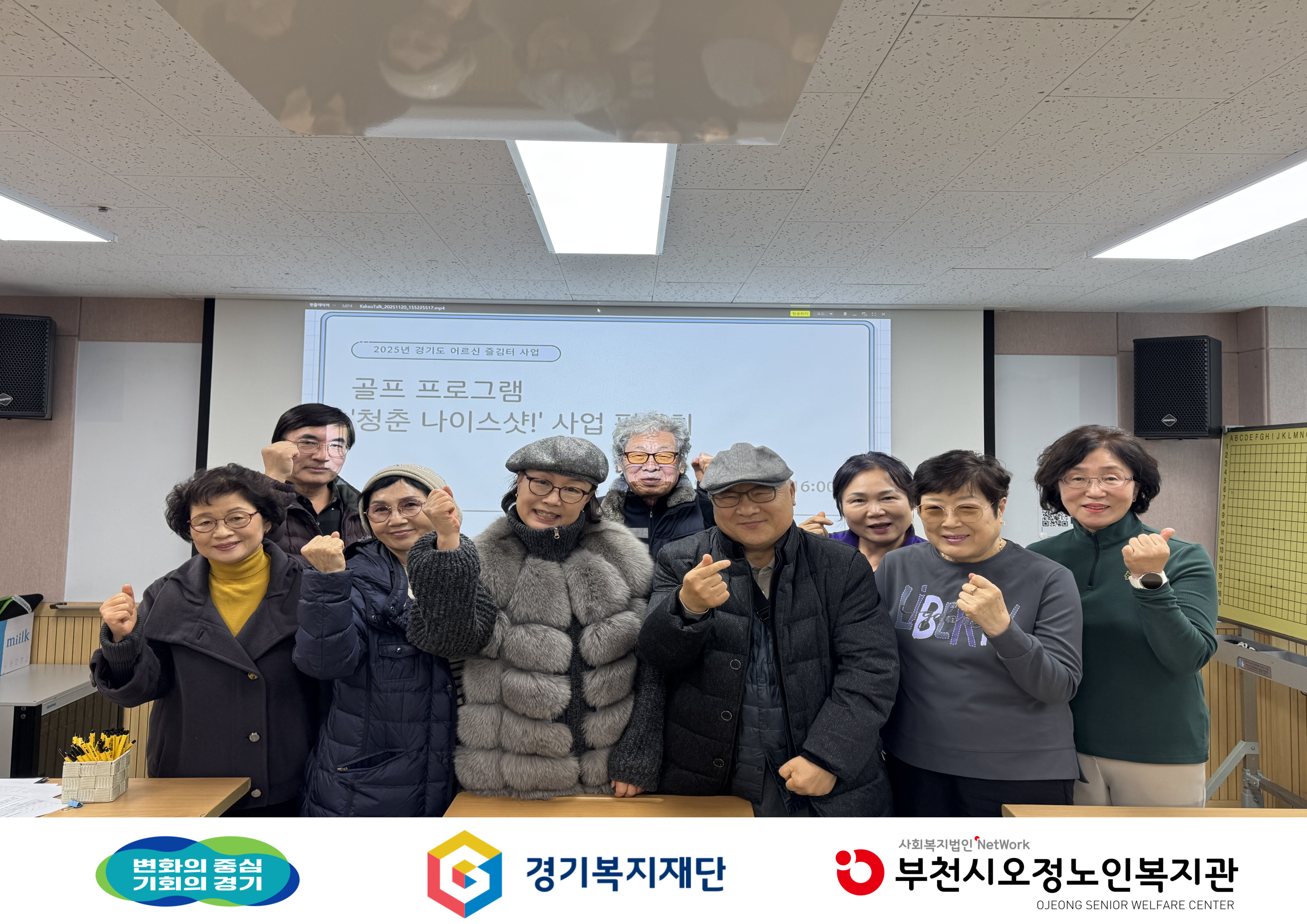 경기복지재단에서 지원하는 어르신 즐김터 ‘청춘 나이스샷’ 사업평가회를 진행했습니다.