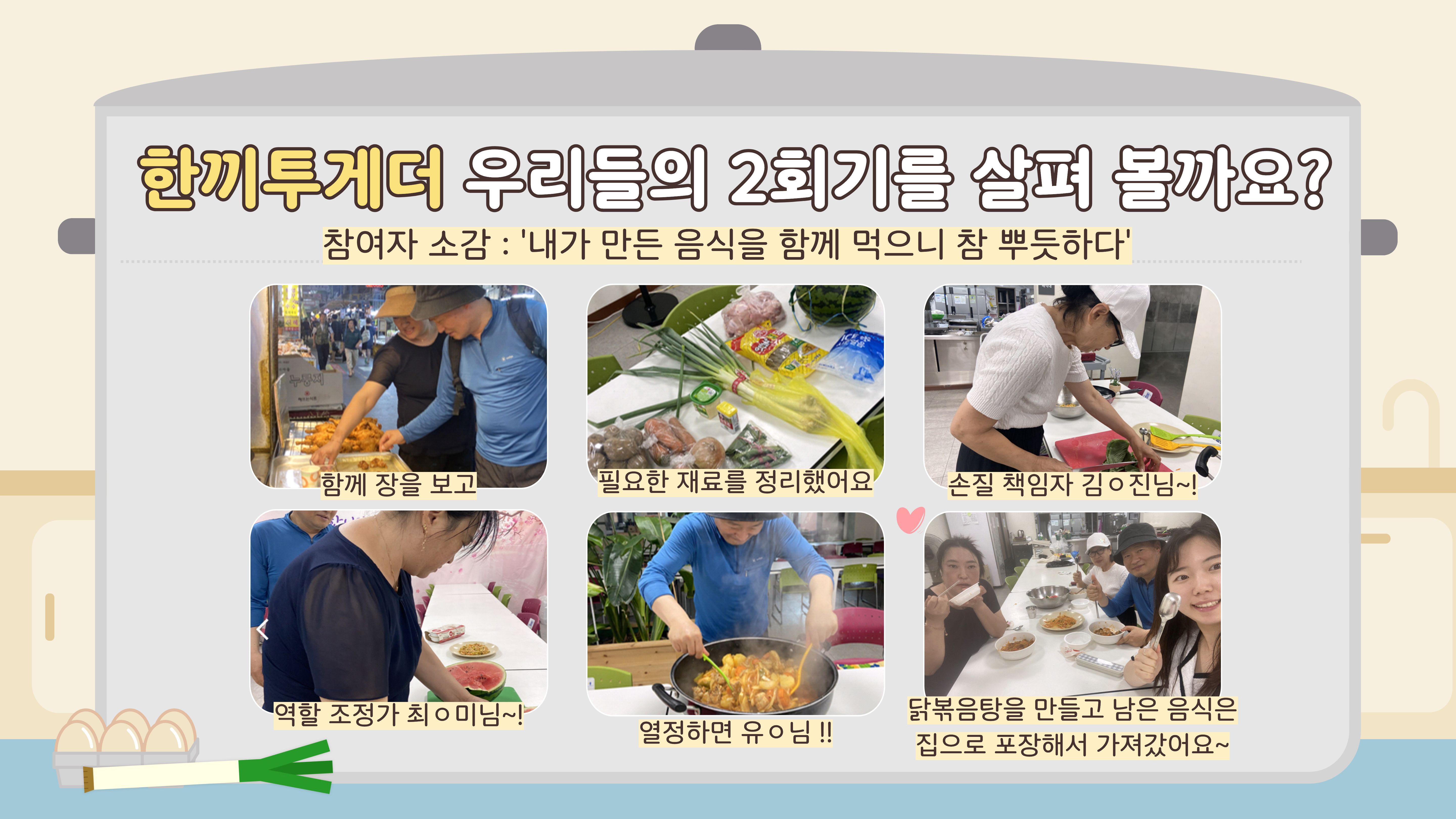 혼자 살아가는 중장년분들이 한 자리에 모여 따뜻한 식사를 함께 나누는 ‘한끼투게더’가 7회기 동안 진행되었습니다.