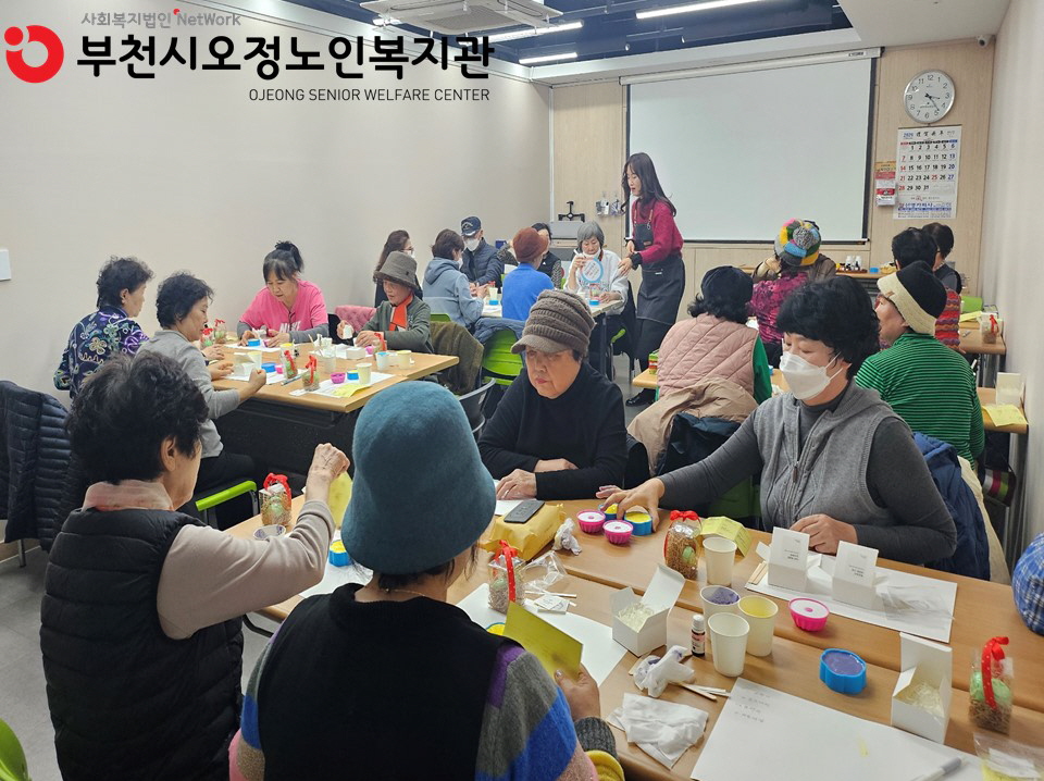 이번에 진행 된 아로마 비누 만들기에는 많은 어르신들께서 관심을 갖고 참여해 주셨습니다. 참여 어르신들께서는 아로마 오일의 효능을 배우며 자신이 좋아하는 향과 색으로 나만의 아로마 비누를 만드셨습니다. 비누를 만드는 과정에서 큰 환호성이 들려오기도 했으며, 서로의 작품을 보며 진심어린 칭찬도 아끼지 않으셨습니다. 적극적으로 참여해 주신 모든 어르신들께 깊이 감사드리며, 앞으로도 일상 속 기쁨과 치유를 느끼실 수 있는 프로그램으로 찾아뵙겠습니다. ○ 일시: 25.12.10.(수) 14:00~15:30 ○ 장소: 별관 프로그램실 ○ 대상: 참여자 22명 ○ 내용: 인지기능향상을 위한 아로마비누 만들기 ○ 문의: 복지2과 노인종합상담센터 곽대연 상담사 032)683-9290
