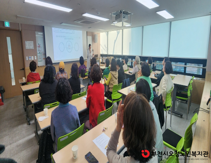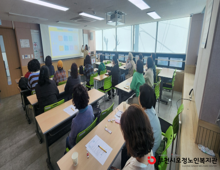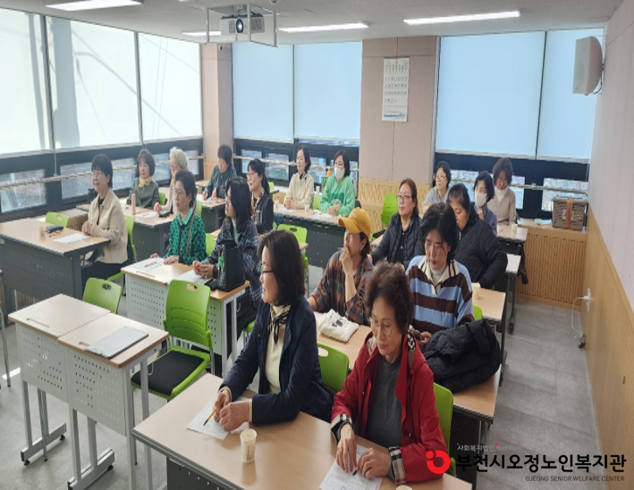 부천시오정노인복지관은 지난 3월 26일(목), 본관 2층 프로그램실에서 지역사회를 위해 헌신하시는 자원봉사자분들을 모시고 '상반기 보수교육 및 간담회'를 성공적으로 마쳤습니다.