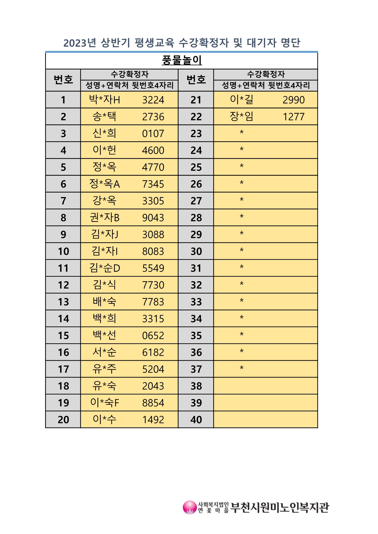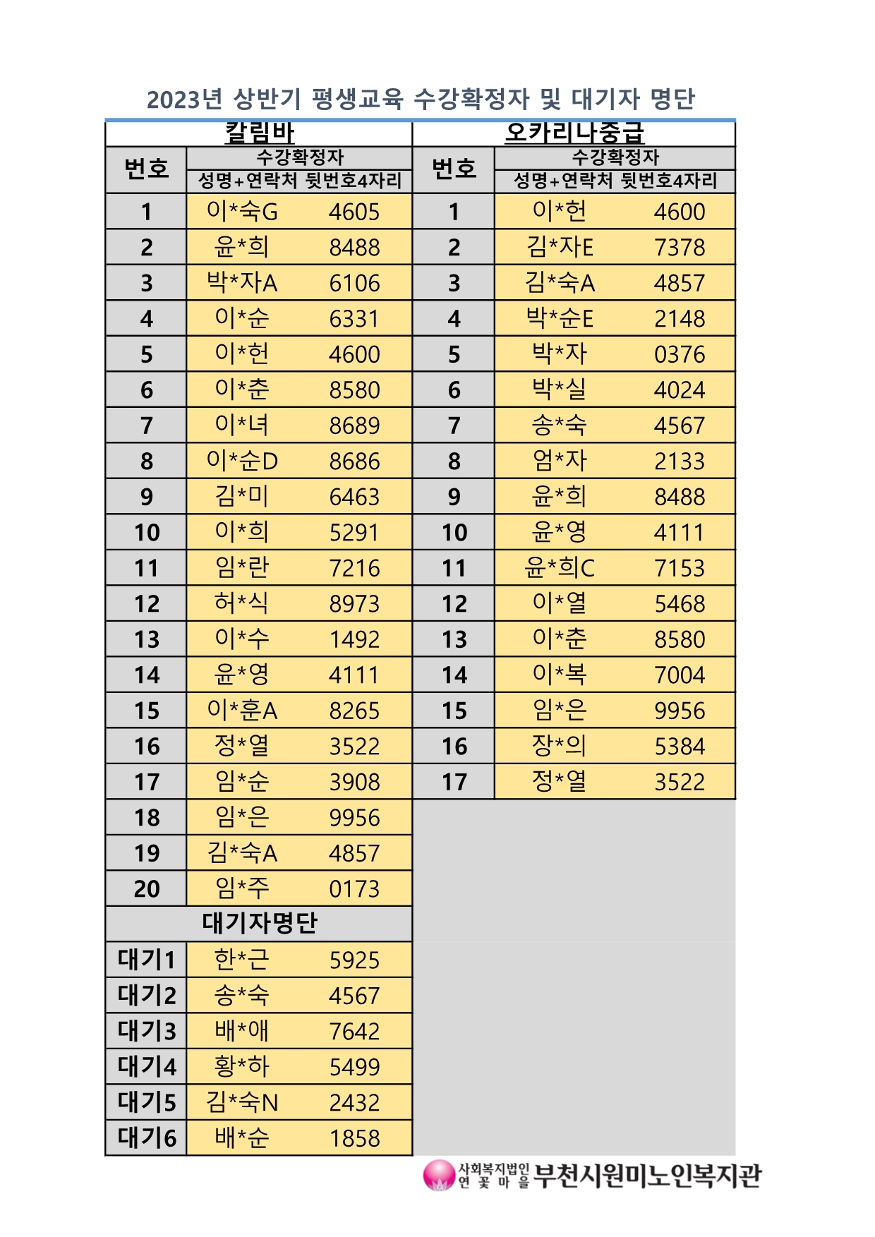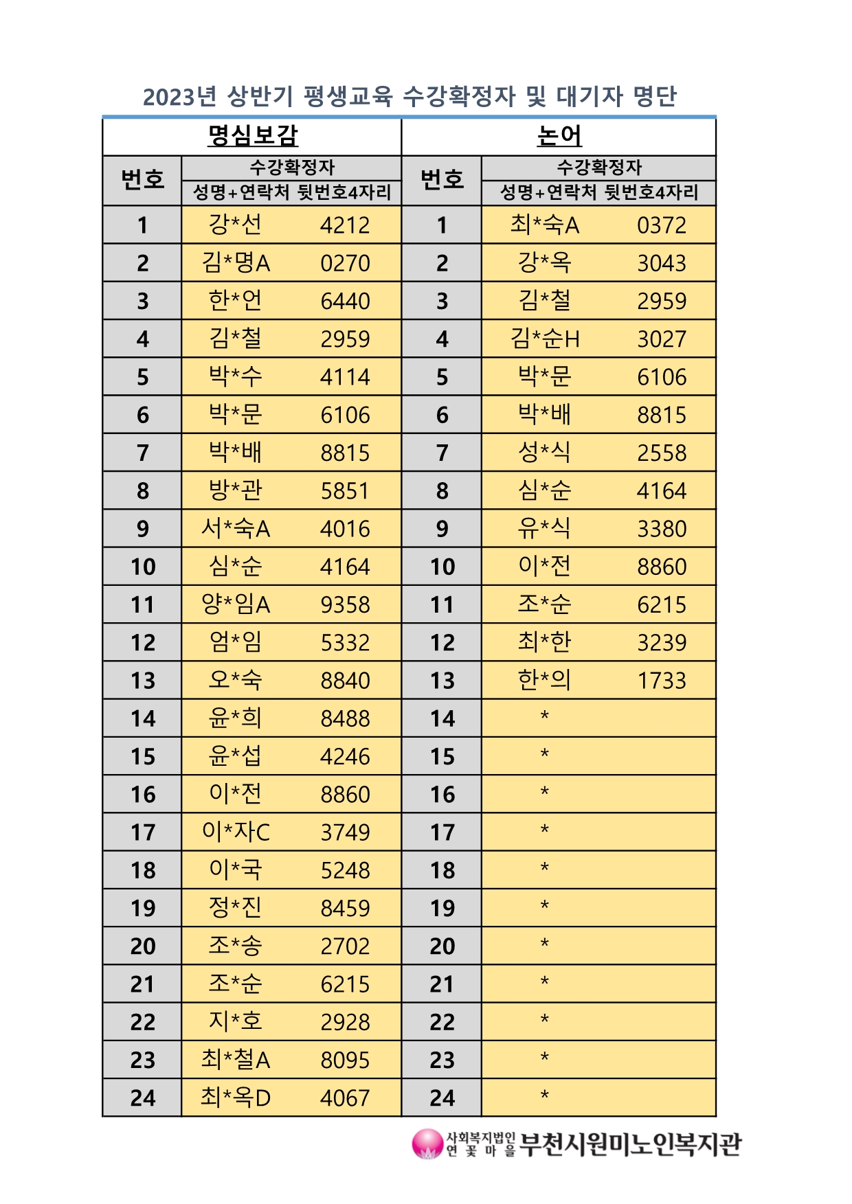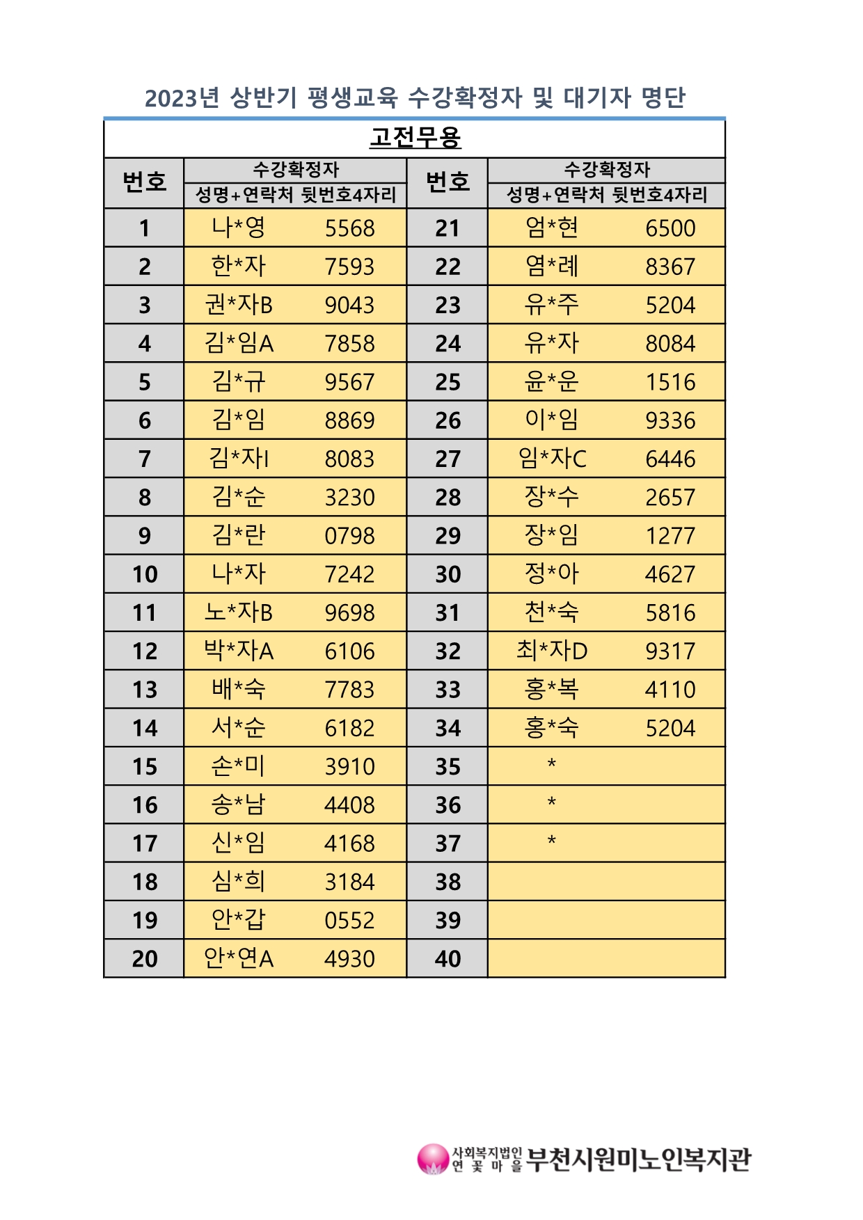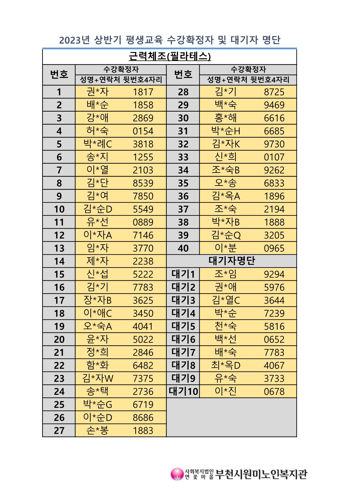 [부천시원미노인복지관] 2023년 상반기 평생교육 프로그램 추첨결과 공지