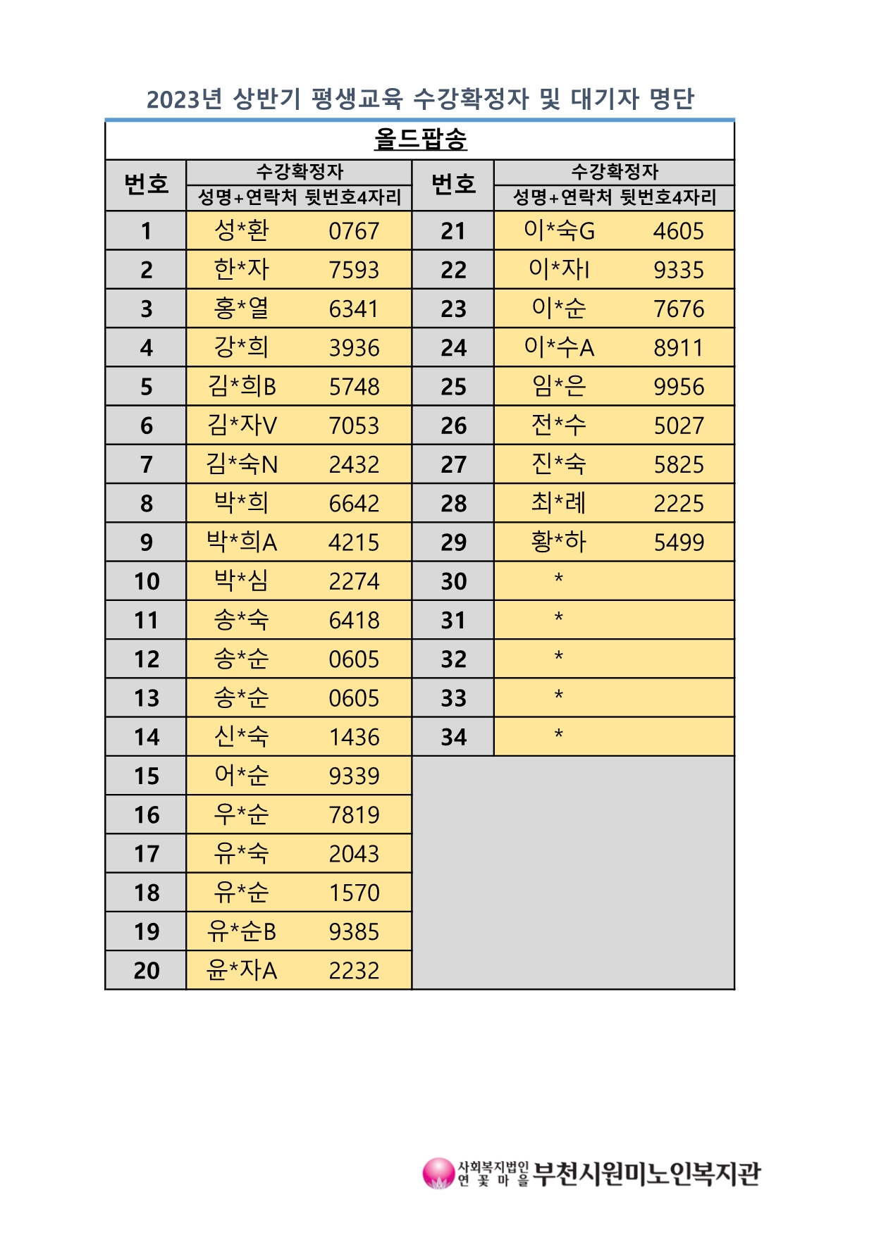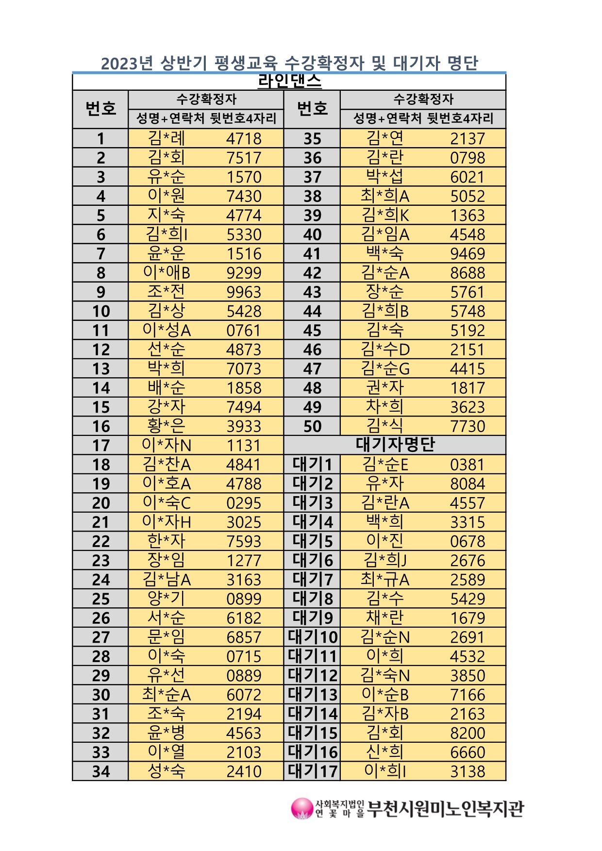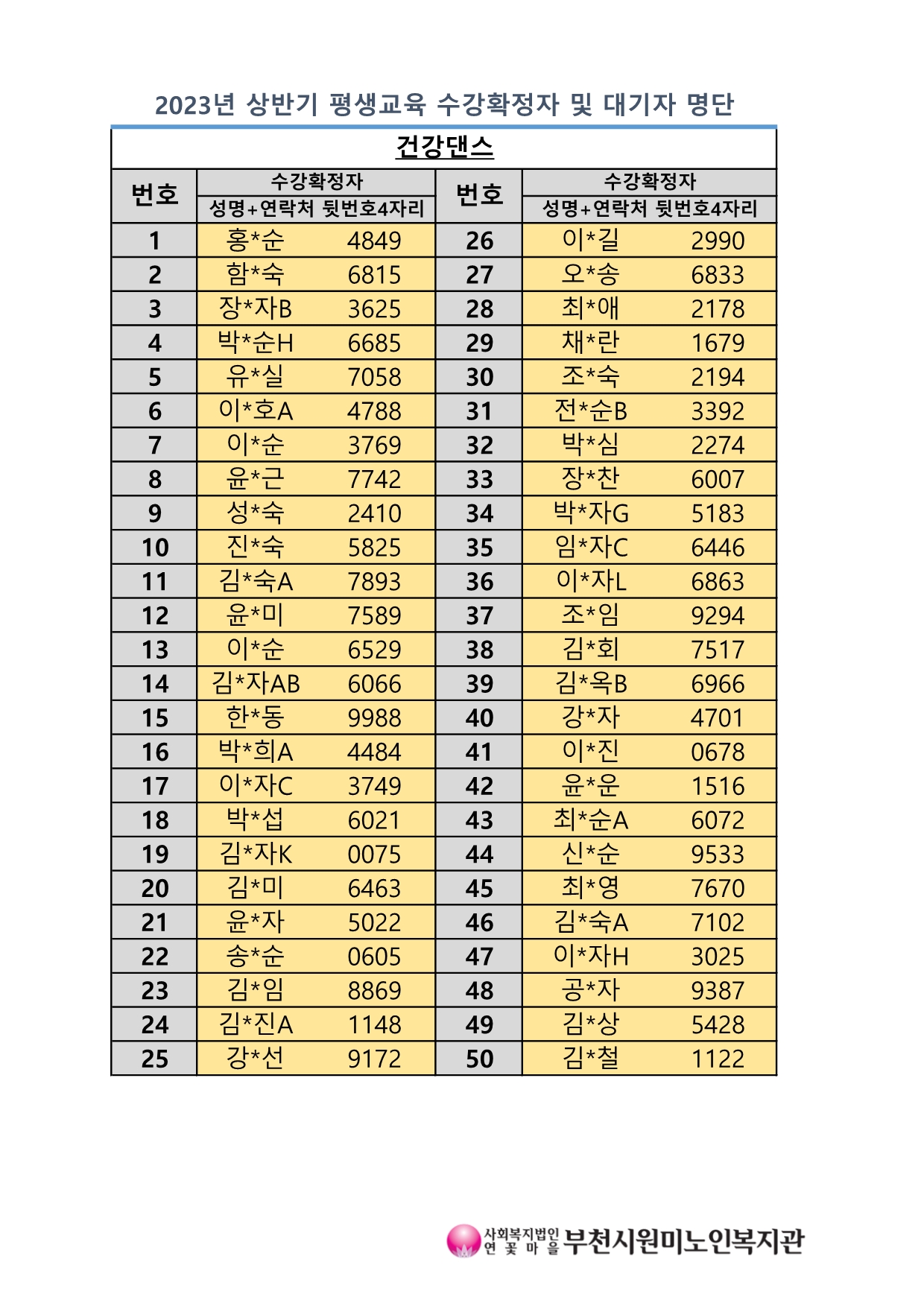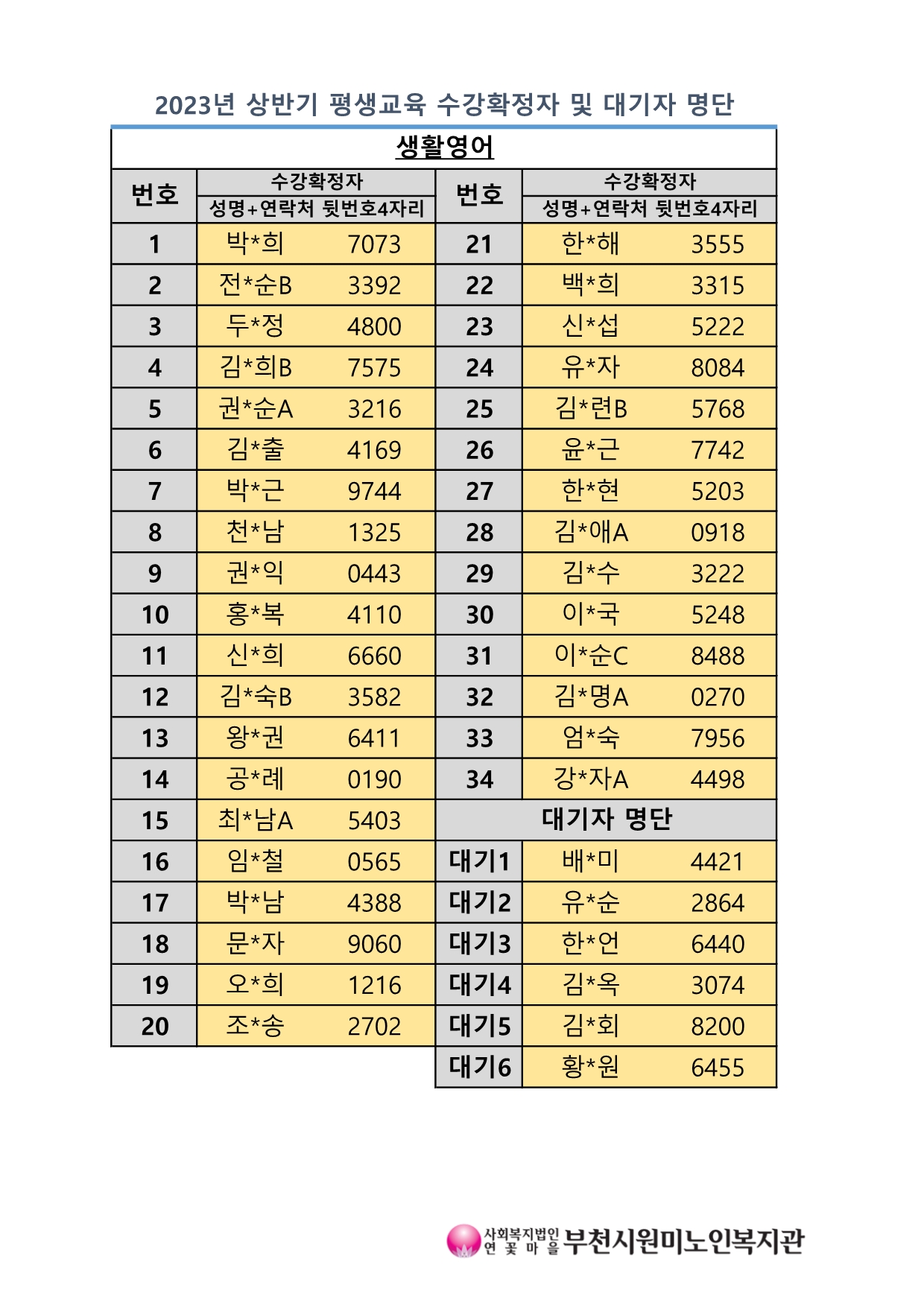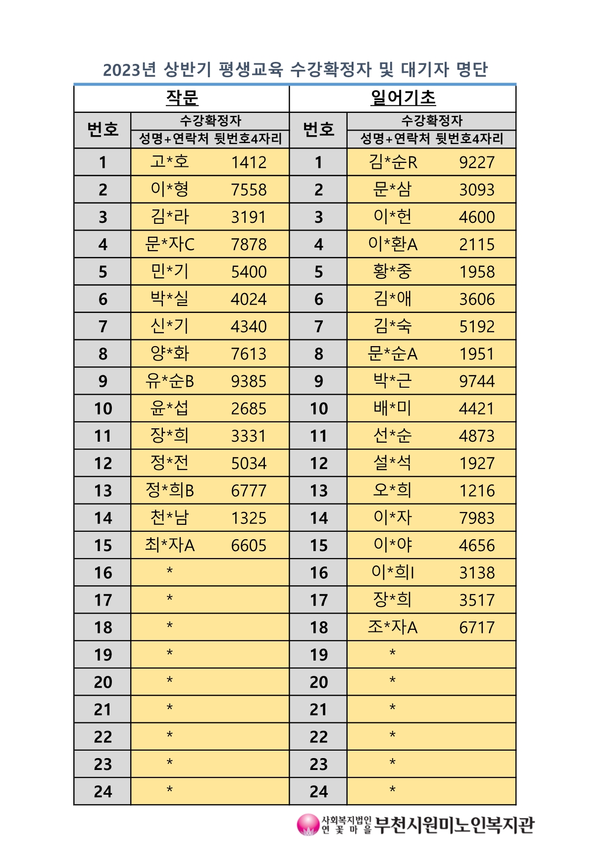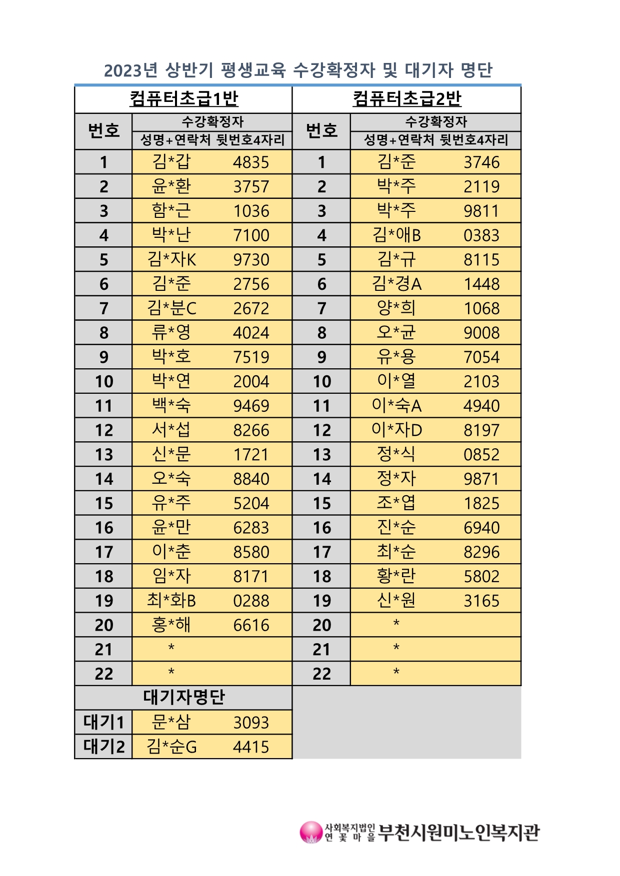 [부천시원미노인복지관] 2023년 상반기 평생교육 프로그램 추첨결과 공지
