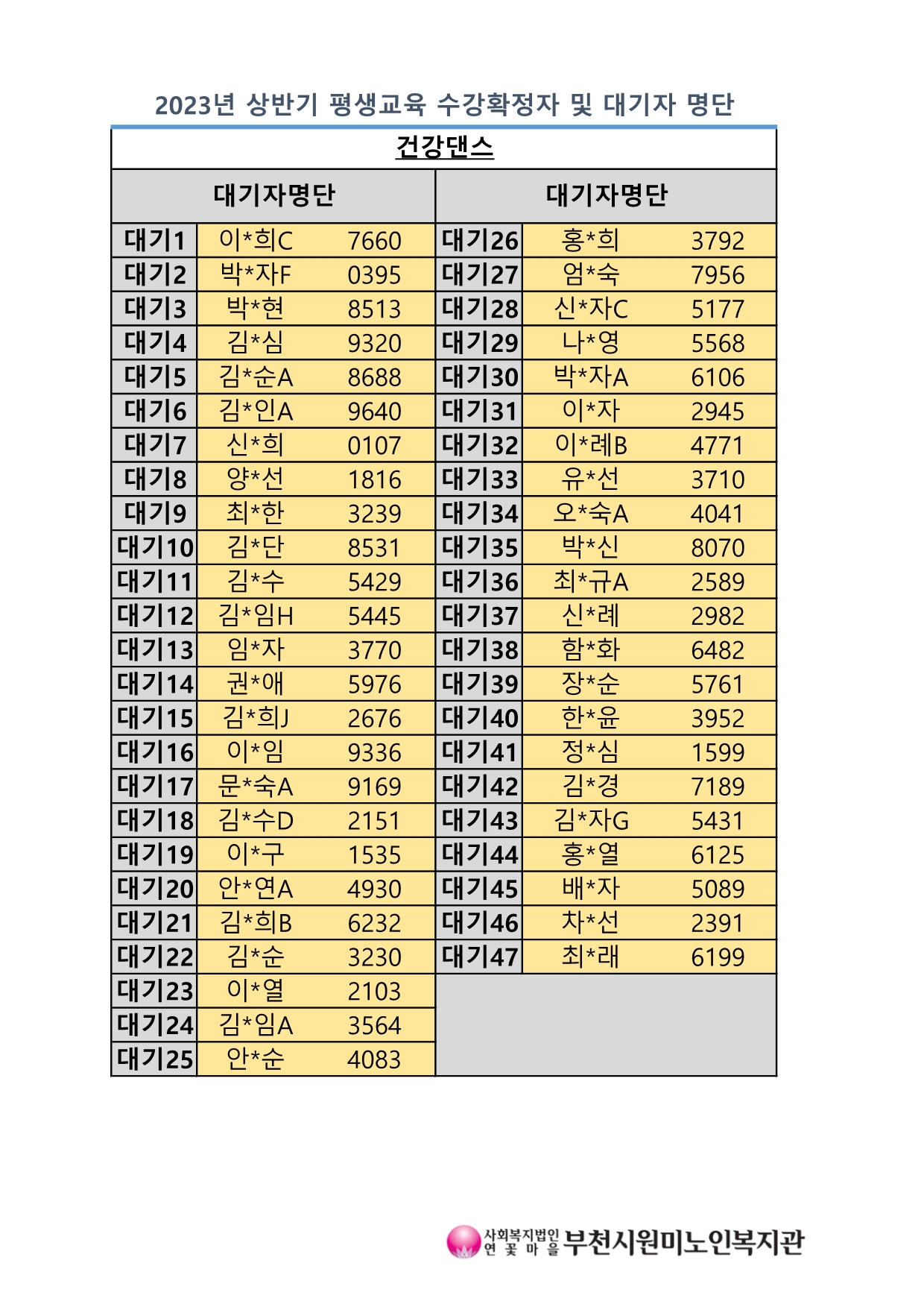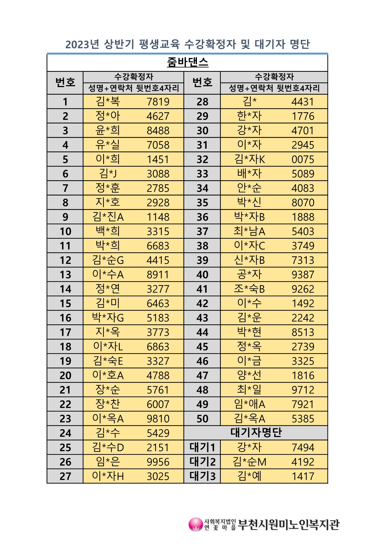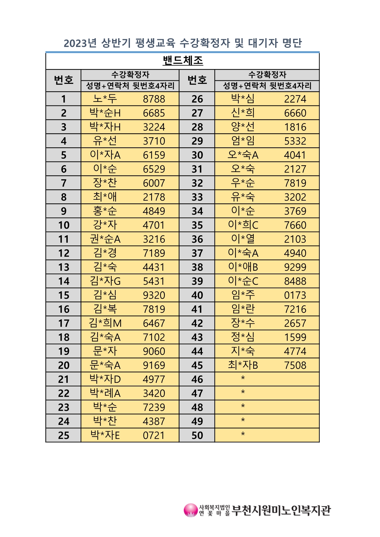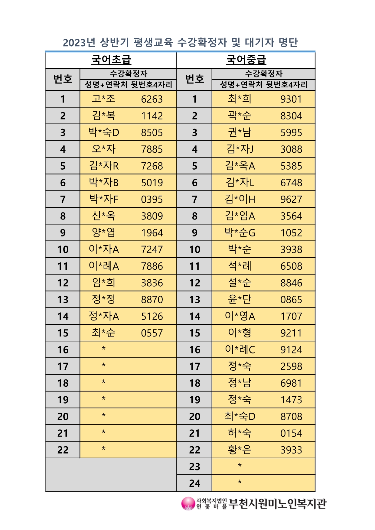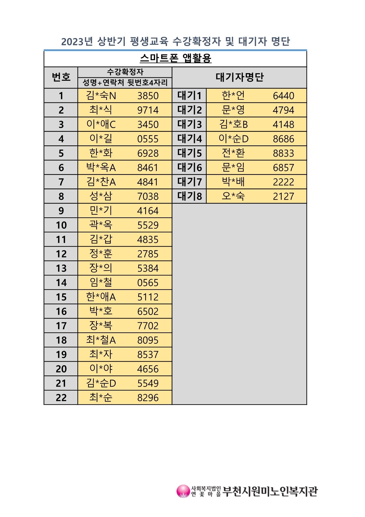 [부천시원미노인복지관] 2023년 상반기 평생교육 프로그램 추첨결과 공지