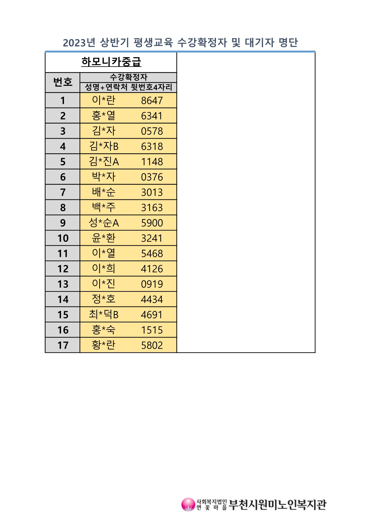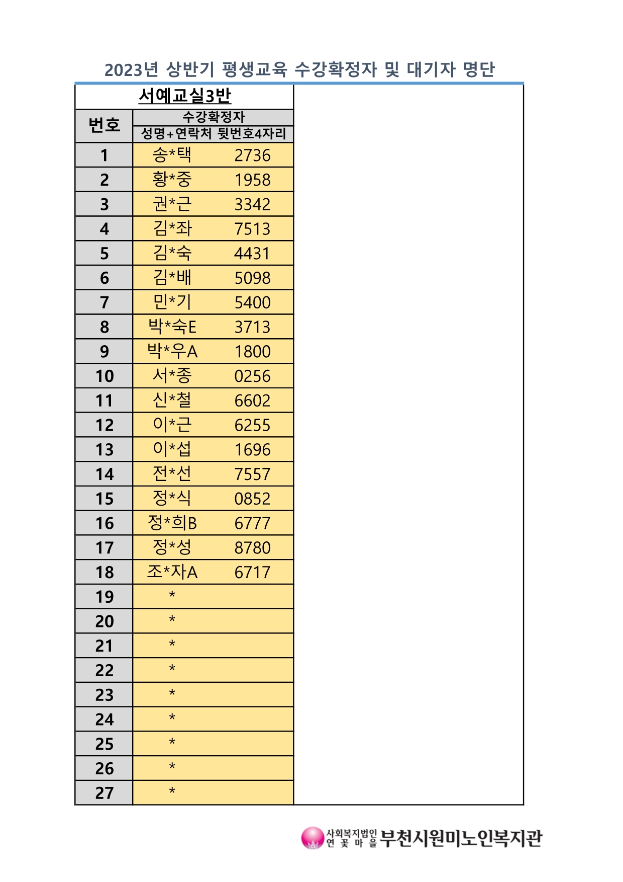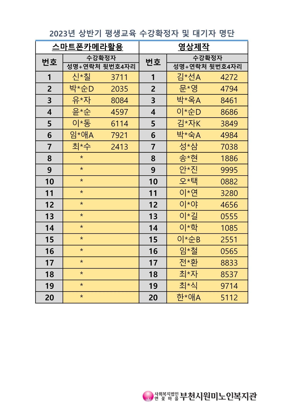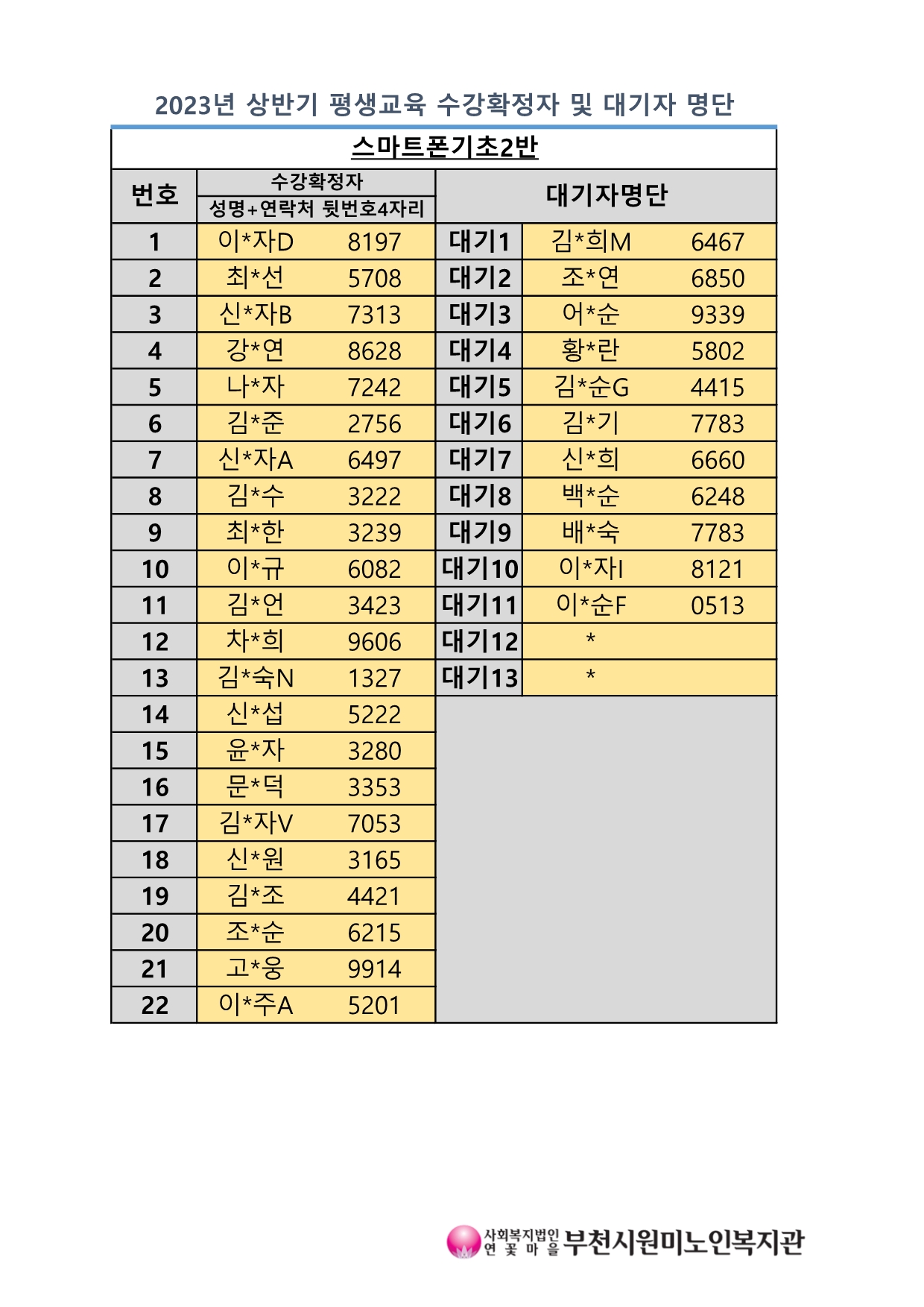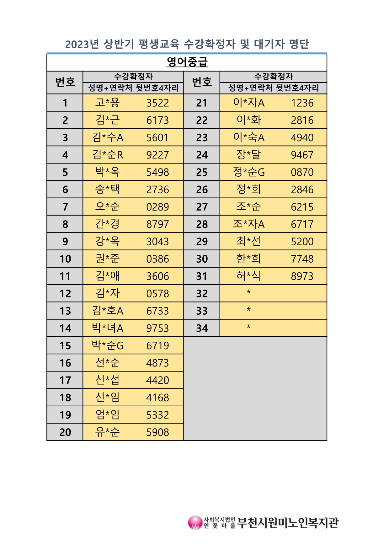 [부천시원미노인복지관] 2023년 상반기 평생교육 프로그램 추첨결과 공지