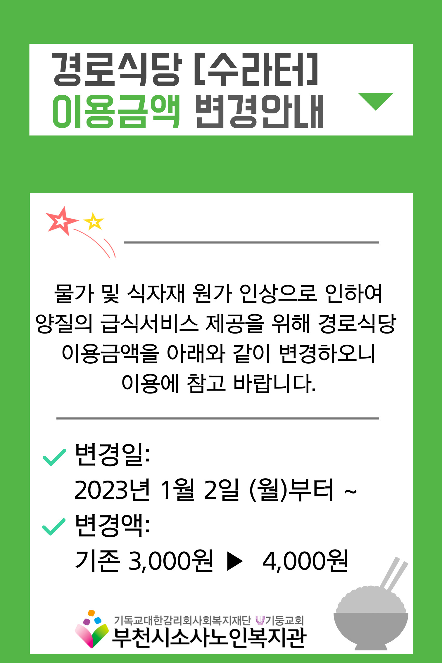 경로식당 이용금액 변경안내