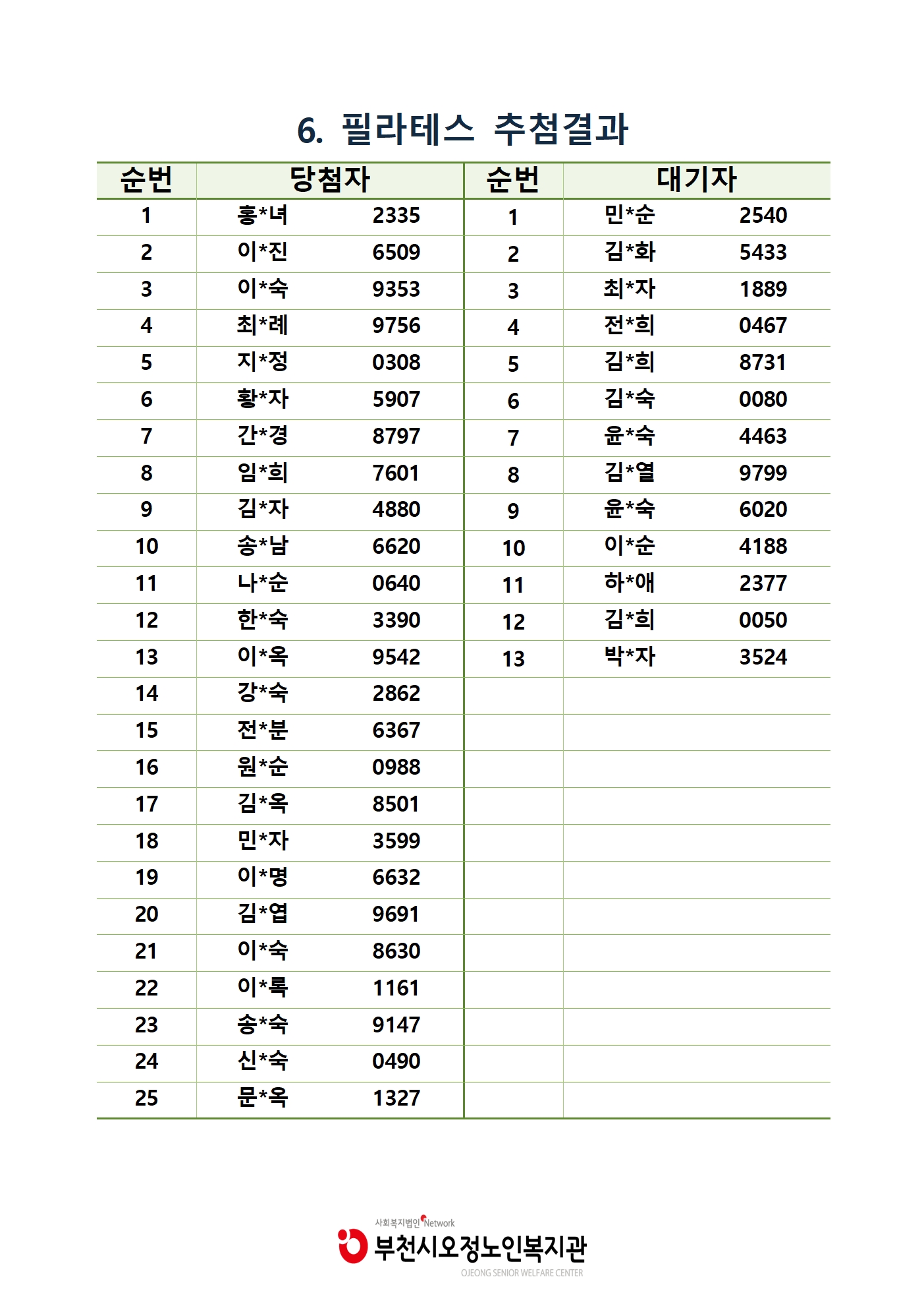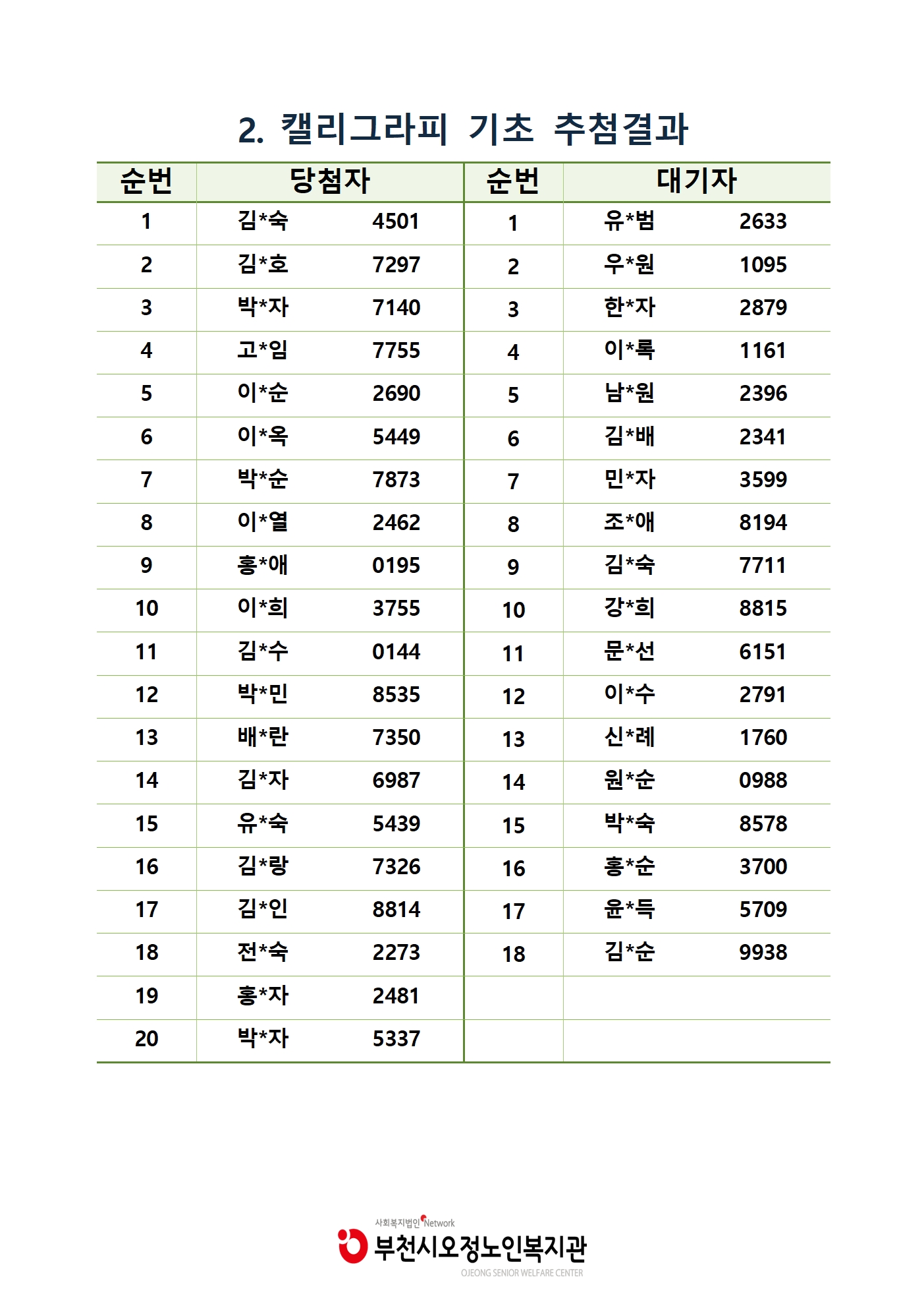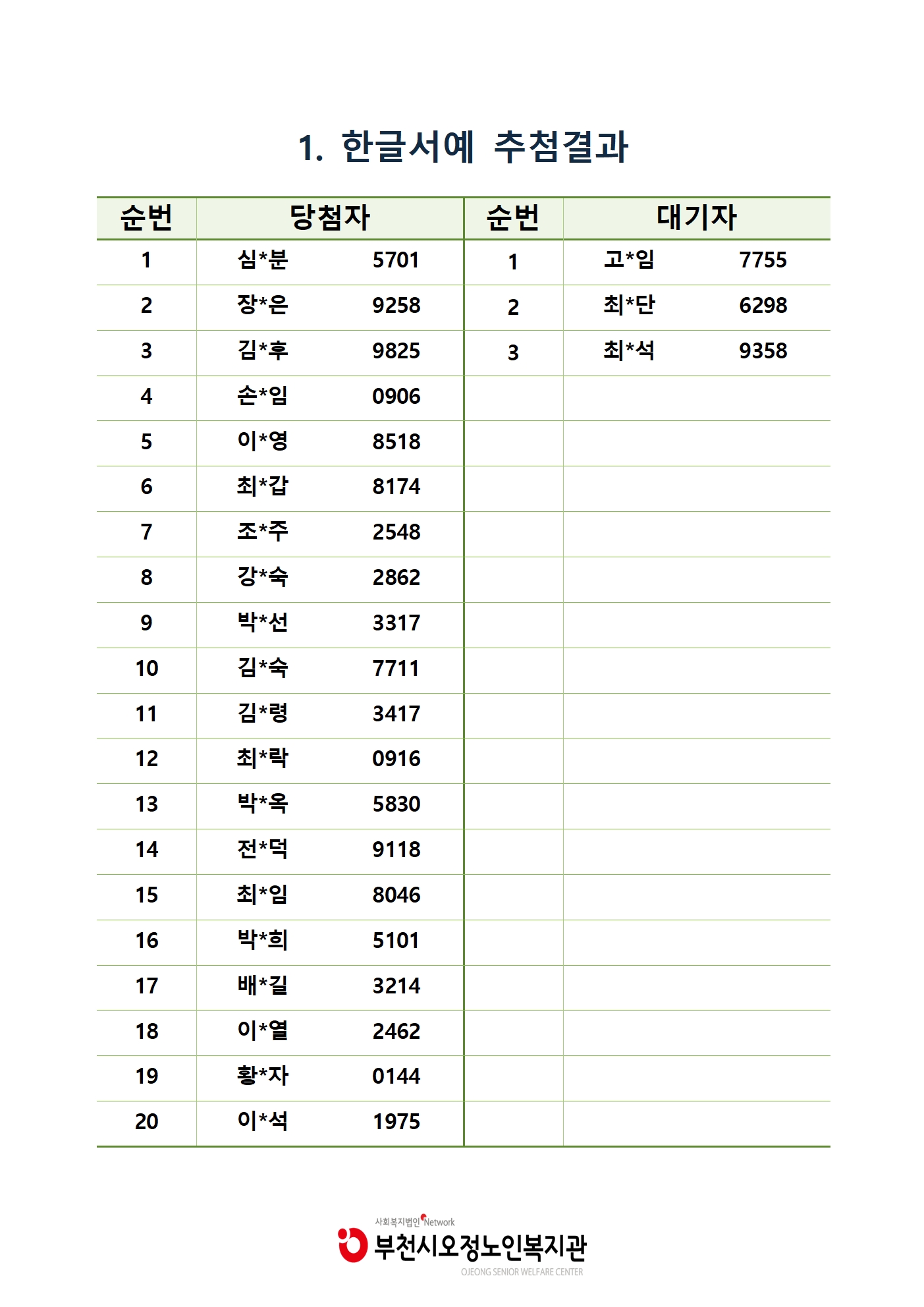 [부천시오정노인복지관] 2023년 1학기 평생교육 추첨결과 공지