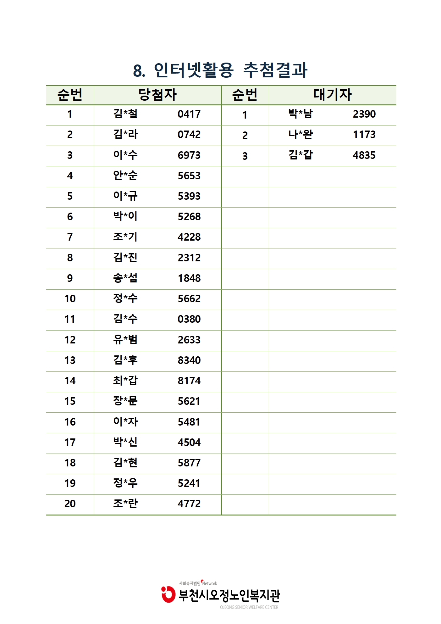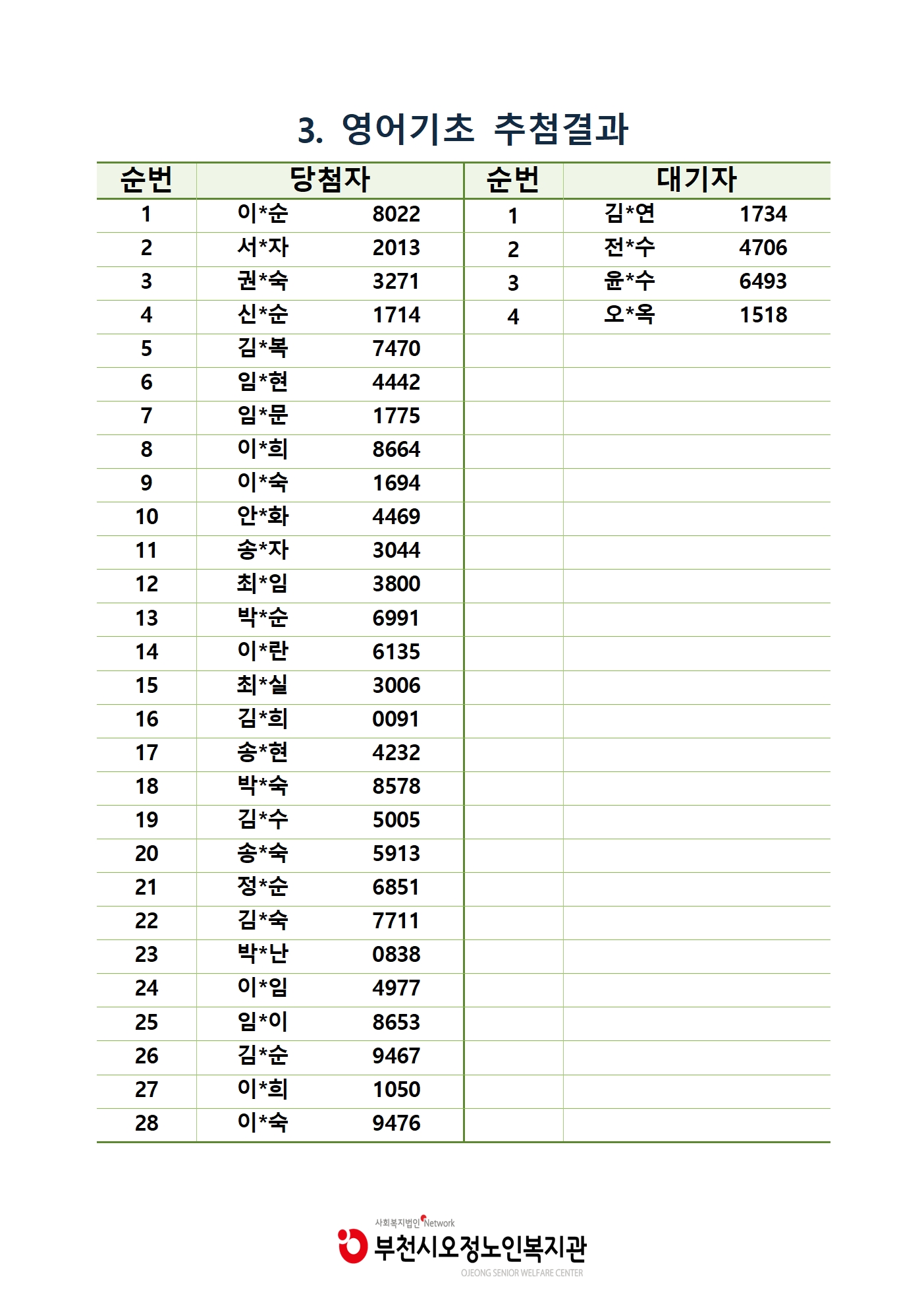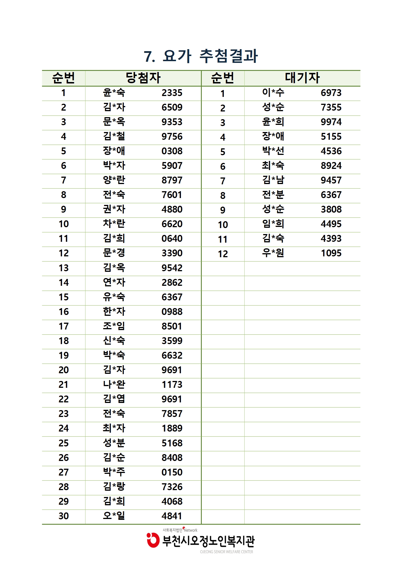 ※ 대기자의 경우 순번 맞춰 개별 연락 드립니다.