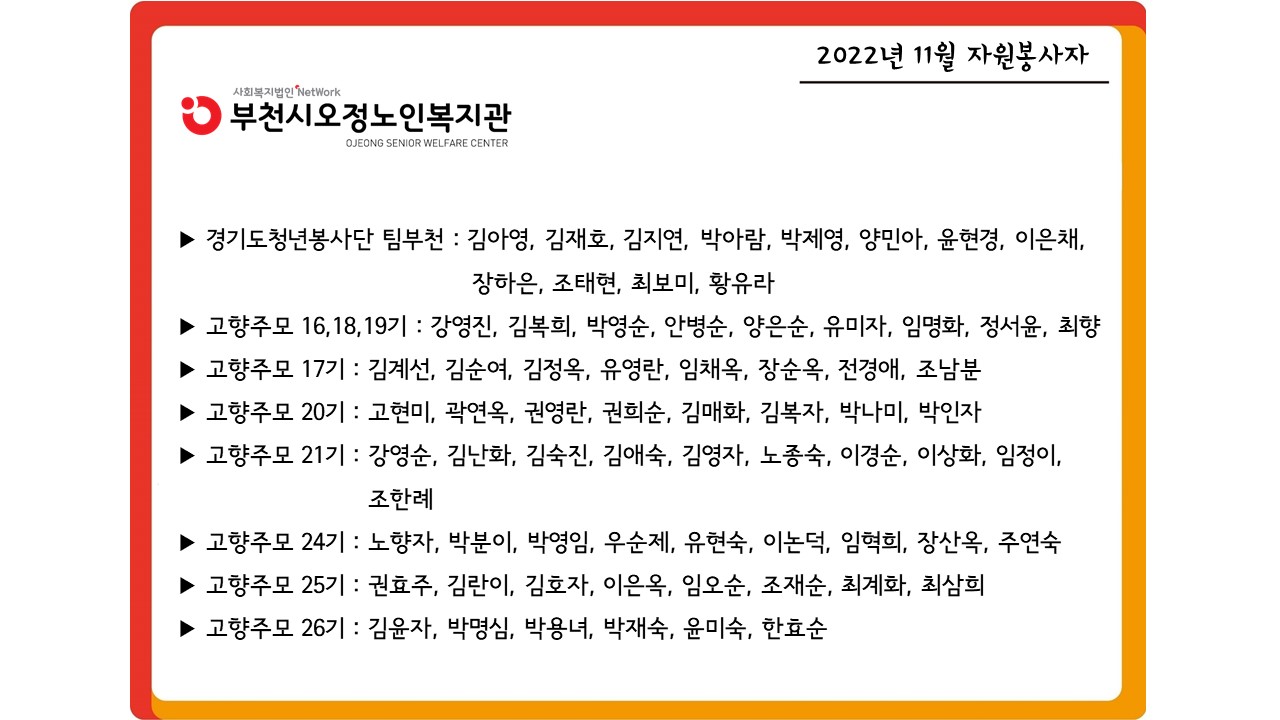 항상 부천시오정노인복지관과 함께 즐겁고 행복한 시간 되시길 바랍니다.