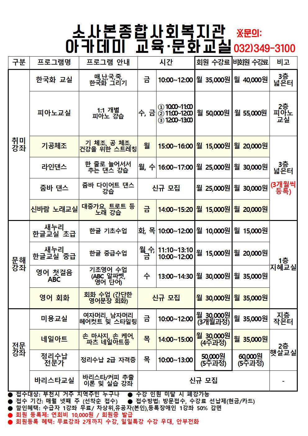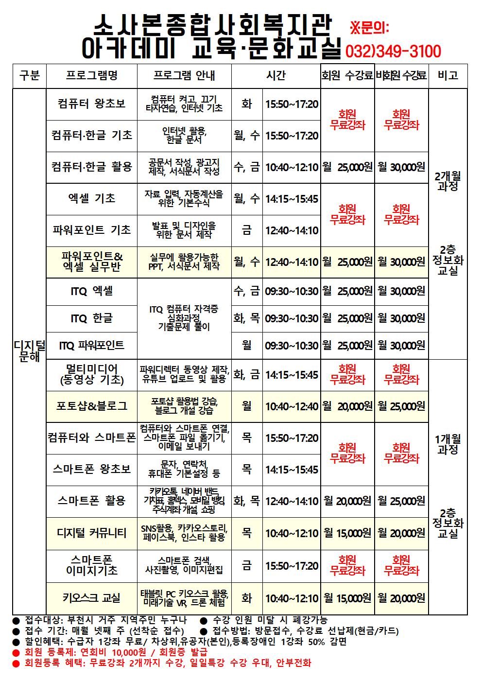 소사본종합사회복지관의 교육문화 프로그램을 통해 즐겁고 행복한 시간 보내시길 바랍니다. 감사합니다.^^*