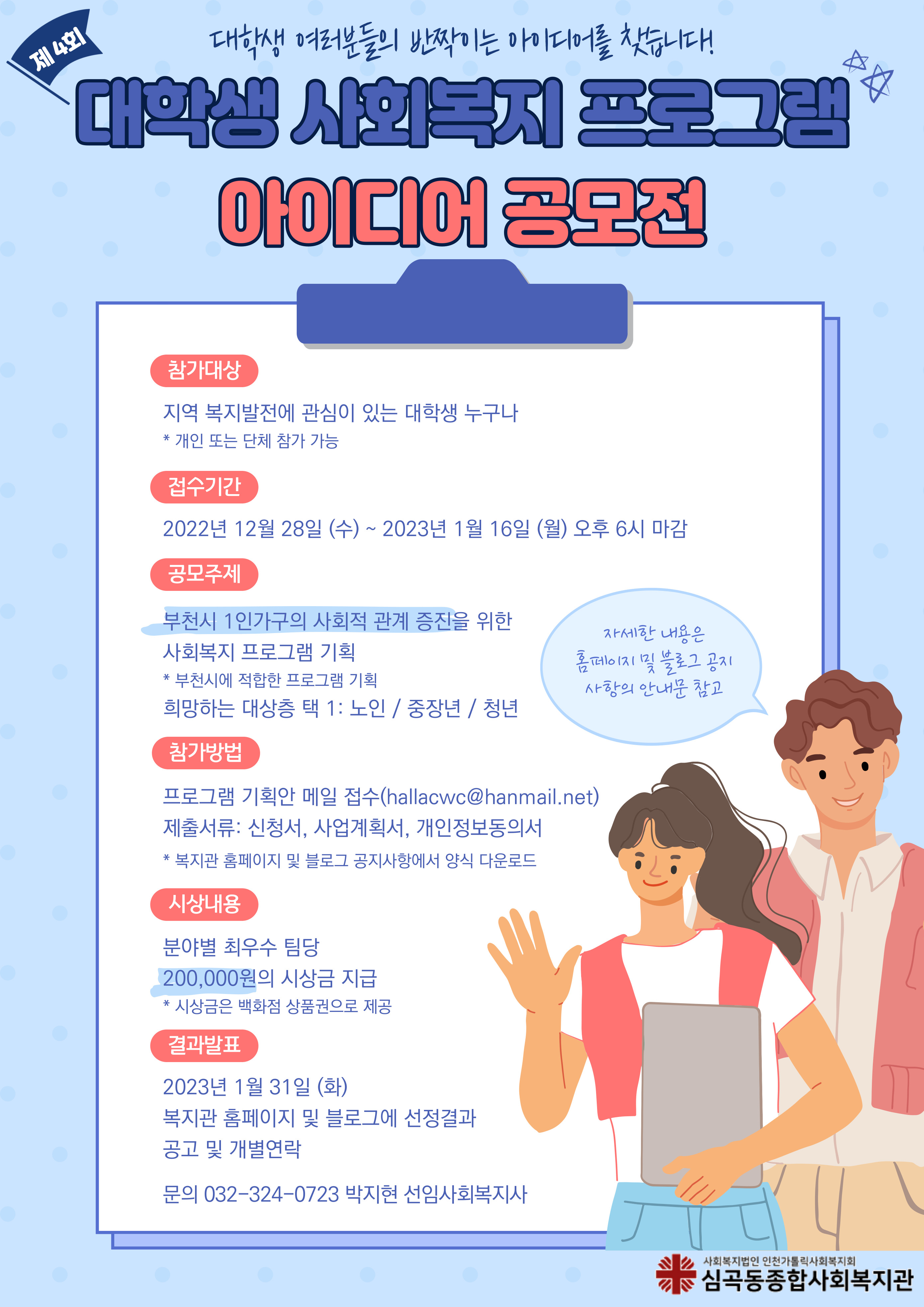 제4회 대학생 사회복지프로그램 아이디어 공모전 실시(~1/16)