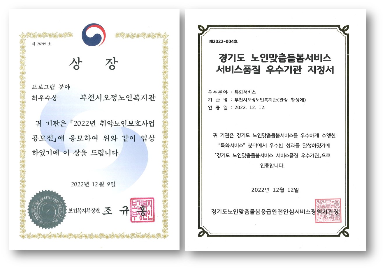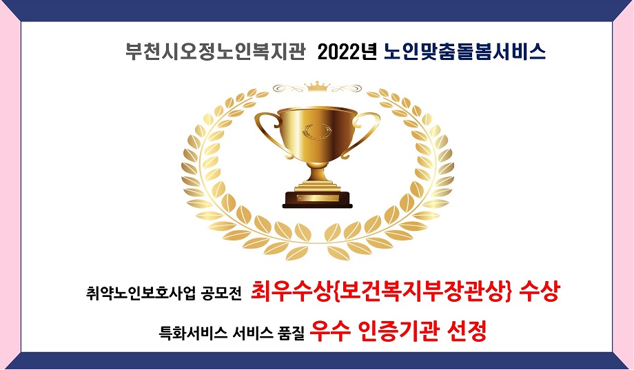 부천시오정노인복지관 노인맞춤돌봄 최우수상 수상 및 우수 인증기관 선정