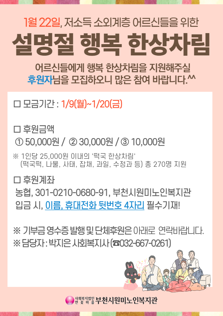[부천시원미노인복지관] 설명절 행복 한상차림 후원자 모집