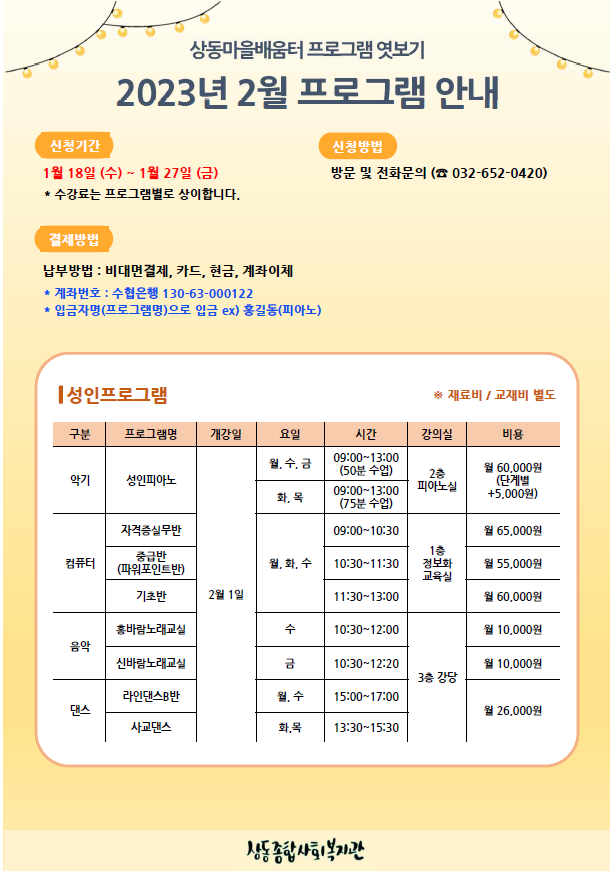 [상동공지] 상동마을배움터 2023년 2월 프로그램 안내