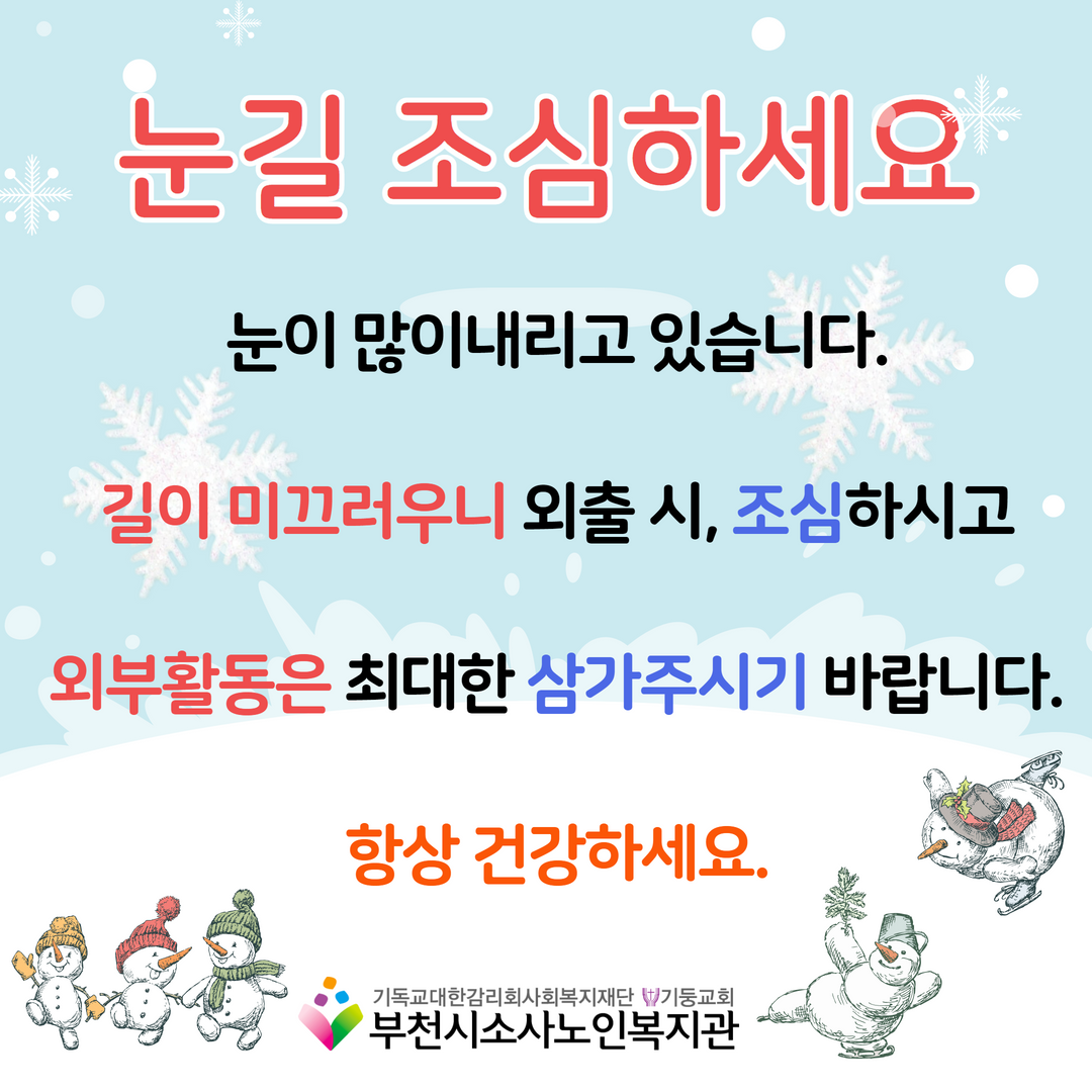 [부천시소사노인복지관] 눈길 조심하시기 바랍니다.