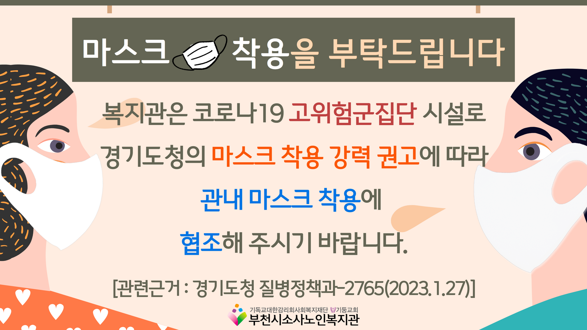 [부천시소사노인복지관] 노인복지관 내 마스크 착용 강력 권고