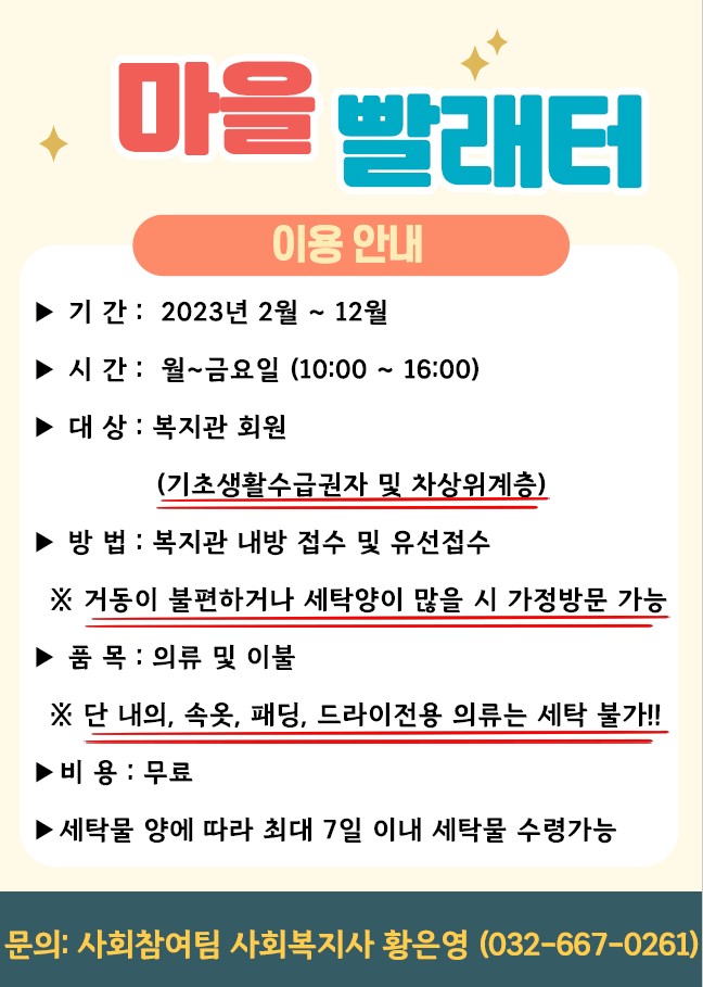부천시원미노인복지관에서는 오는 2월 마을 빨래터를 재 운영합니다.