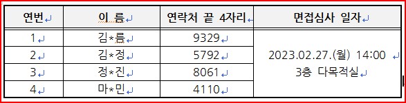 아래와 같이 1차 서류 심사 결과를 안내 드립니다.