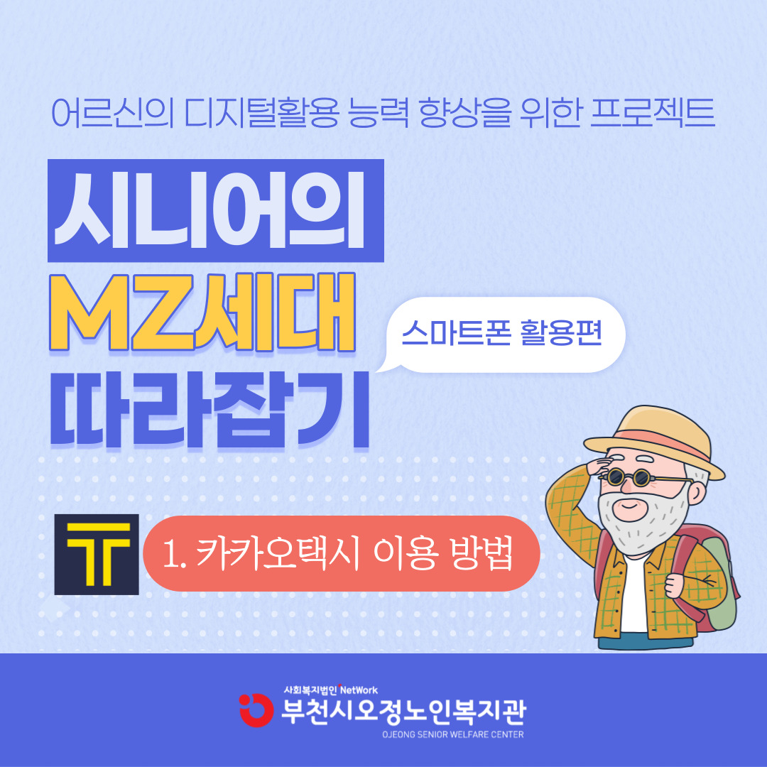 * 부천시오정노인복지관에서는 매주 목요일! 어르신의 디지털활용 능력 향상, 최신 트렌드 경험을 위한 '시니어의 MZ세대 따라잡기' 게시물을 업로드 합니다.