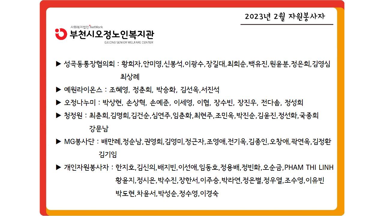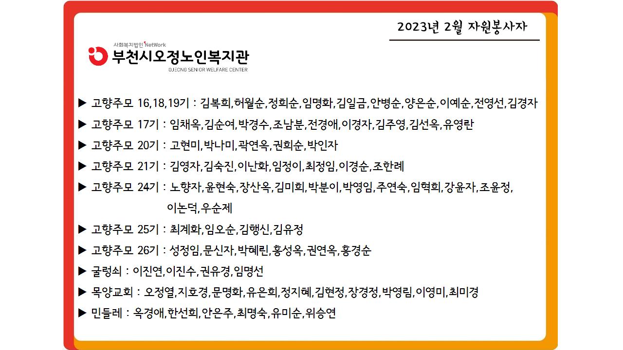 항상 부천시오정노인복지관과 함께 즐겁고 행복한 시간 되시길 바랍니다.
