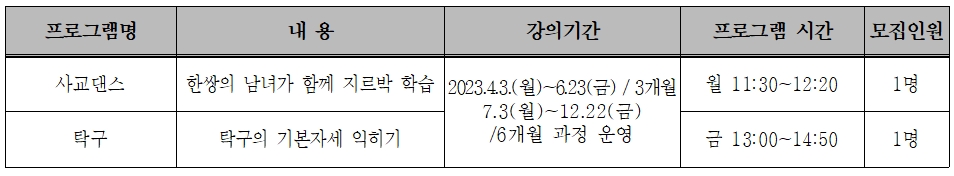 부천시원미노인복지관 2023년 평생교육 프로그램(탁구, 사교댄스) 강사 채용 공고