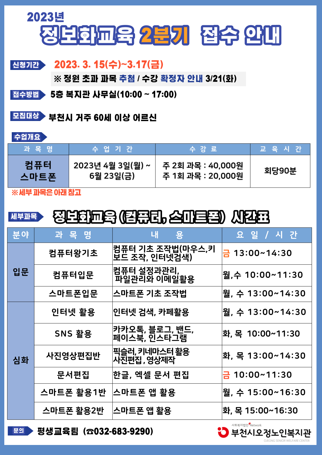 2023년 2분기 정보화교육(컴퓨터, 스마트폰) 접수안내