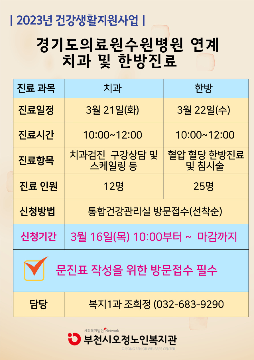 2023년 경기도의료원수원병원 연계 치과 및 한방 진료