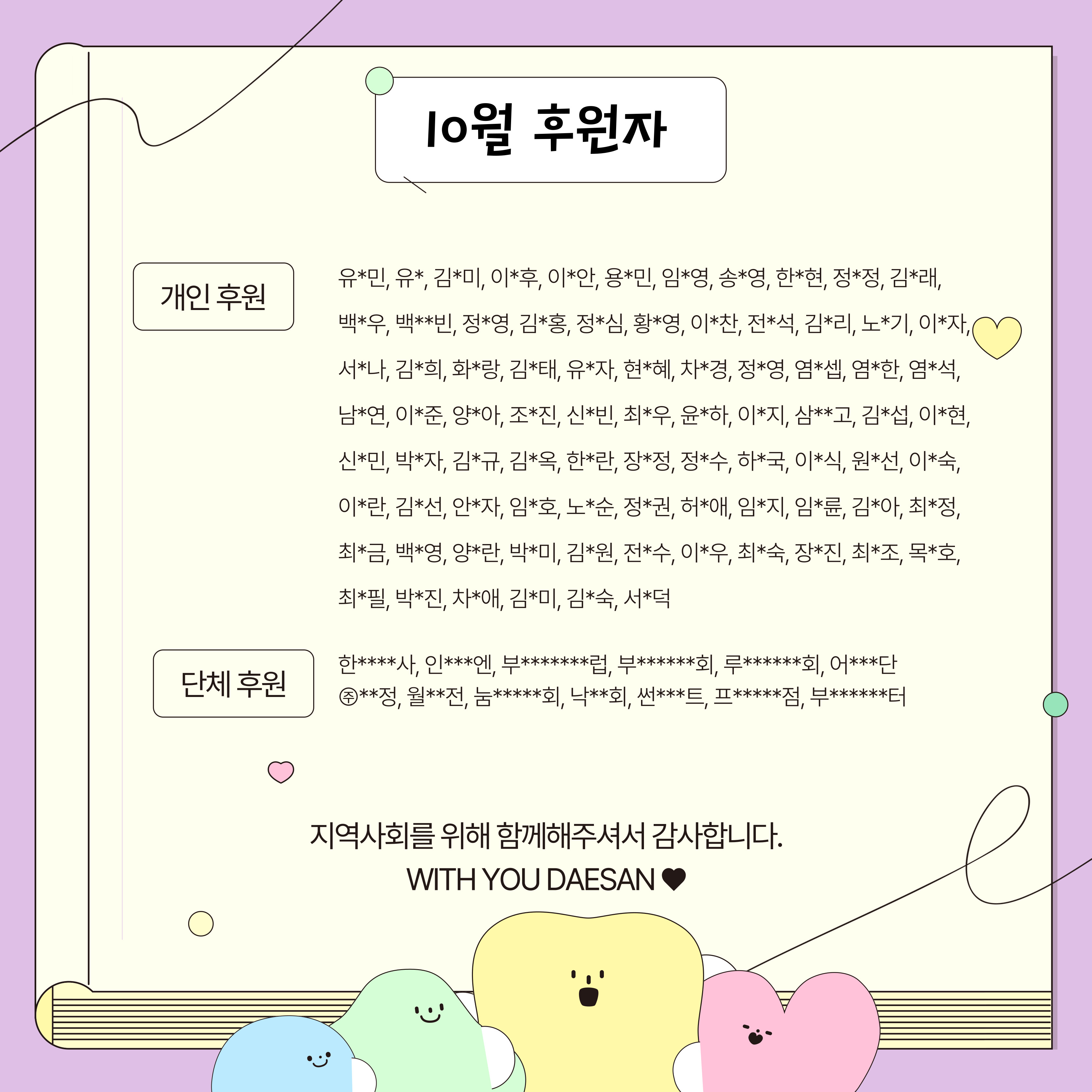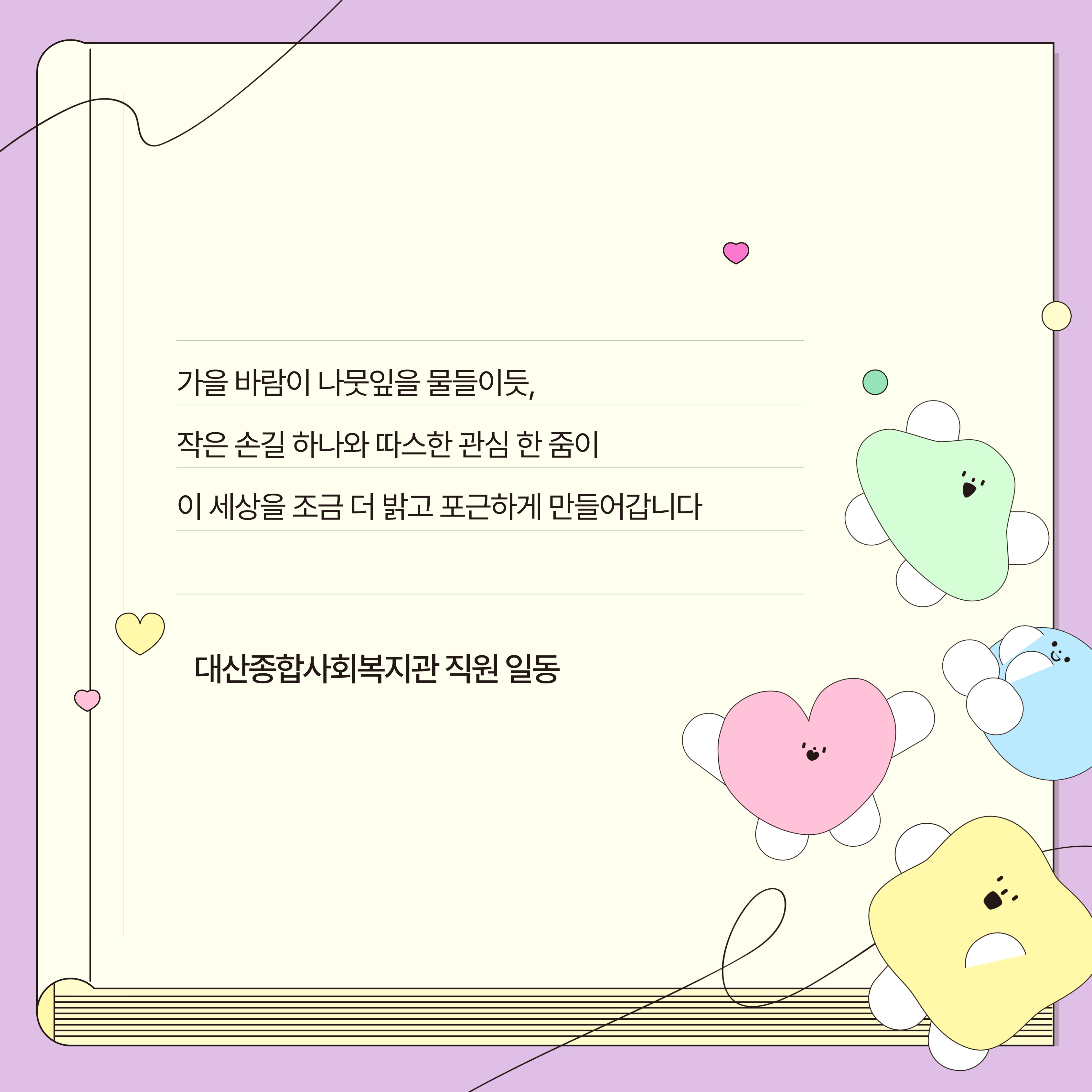 2025년 10월 대산종합사회복지관 후원에 감사드립니다.
