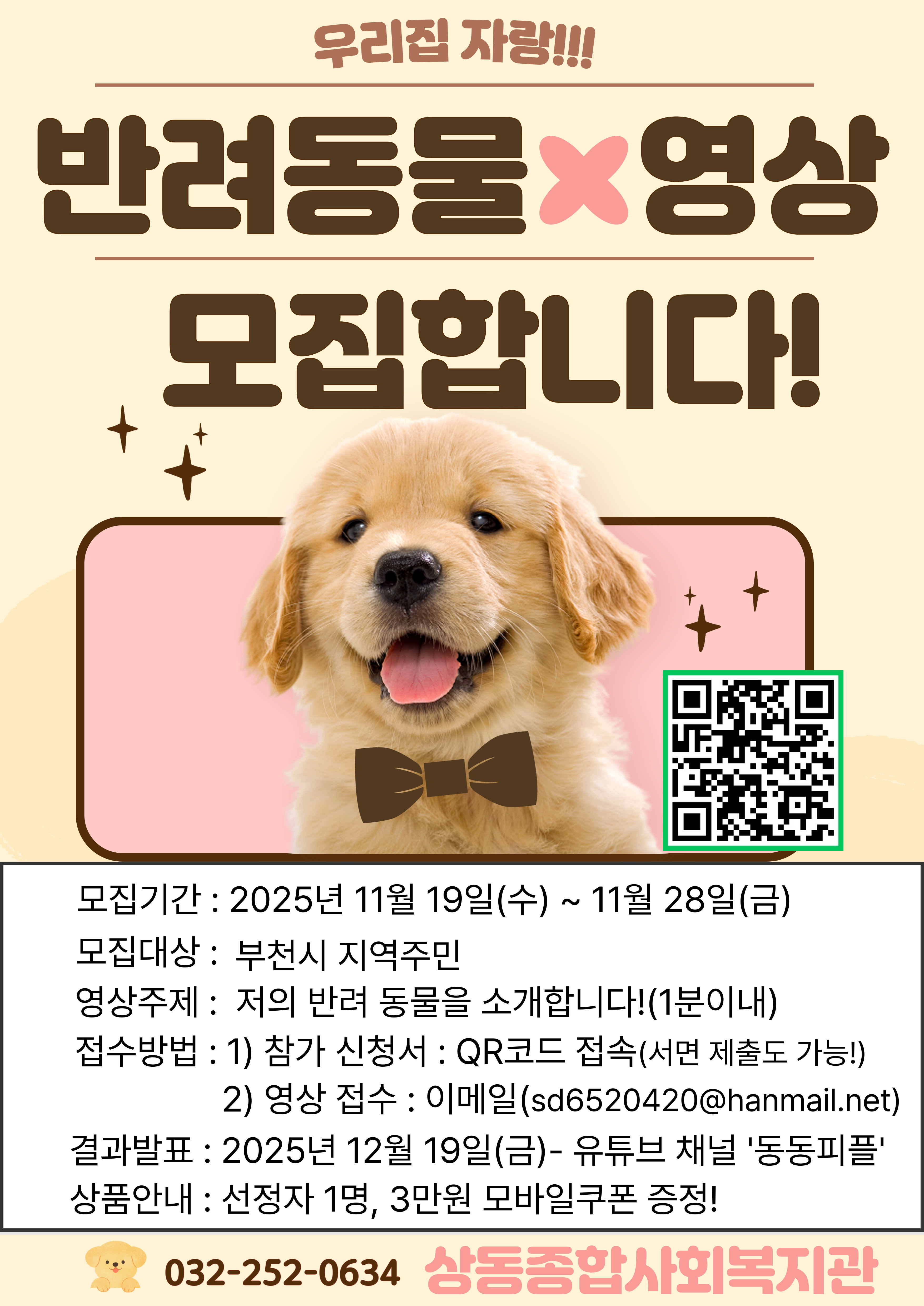 [상동] 상동종합사회복지관 [반려동물x영상 모집]