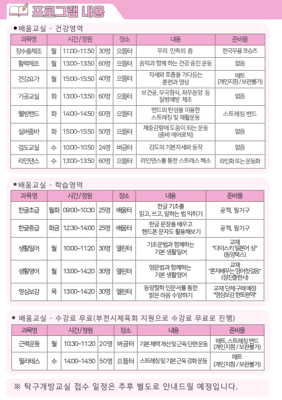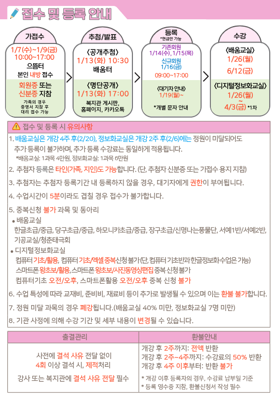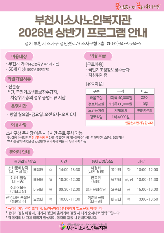 [노년사회화교육사업]2026년 상반기 배움교실 & 1분기 디지털정보화교실 프로그램 모집 안내
