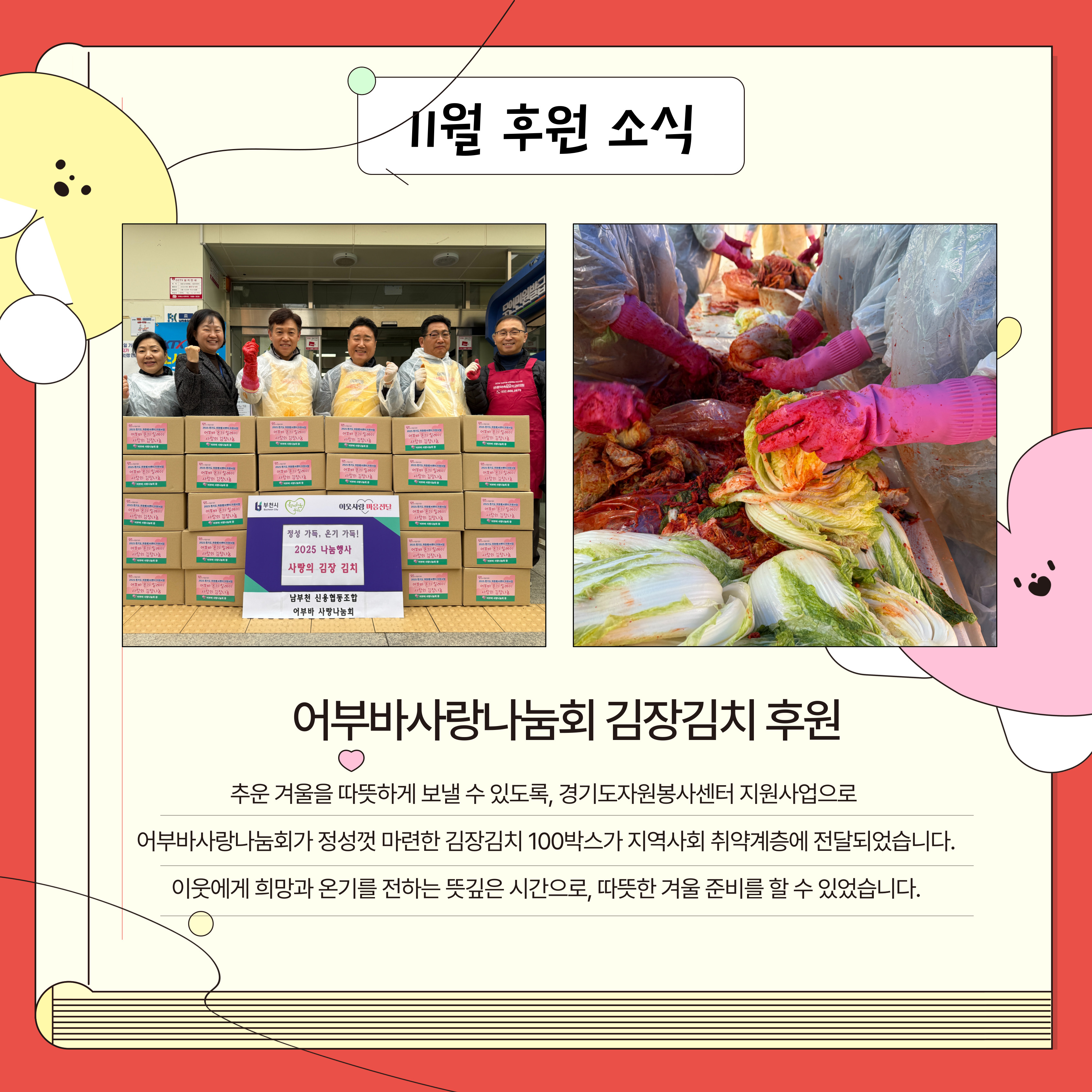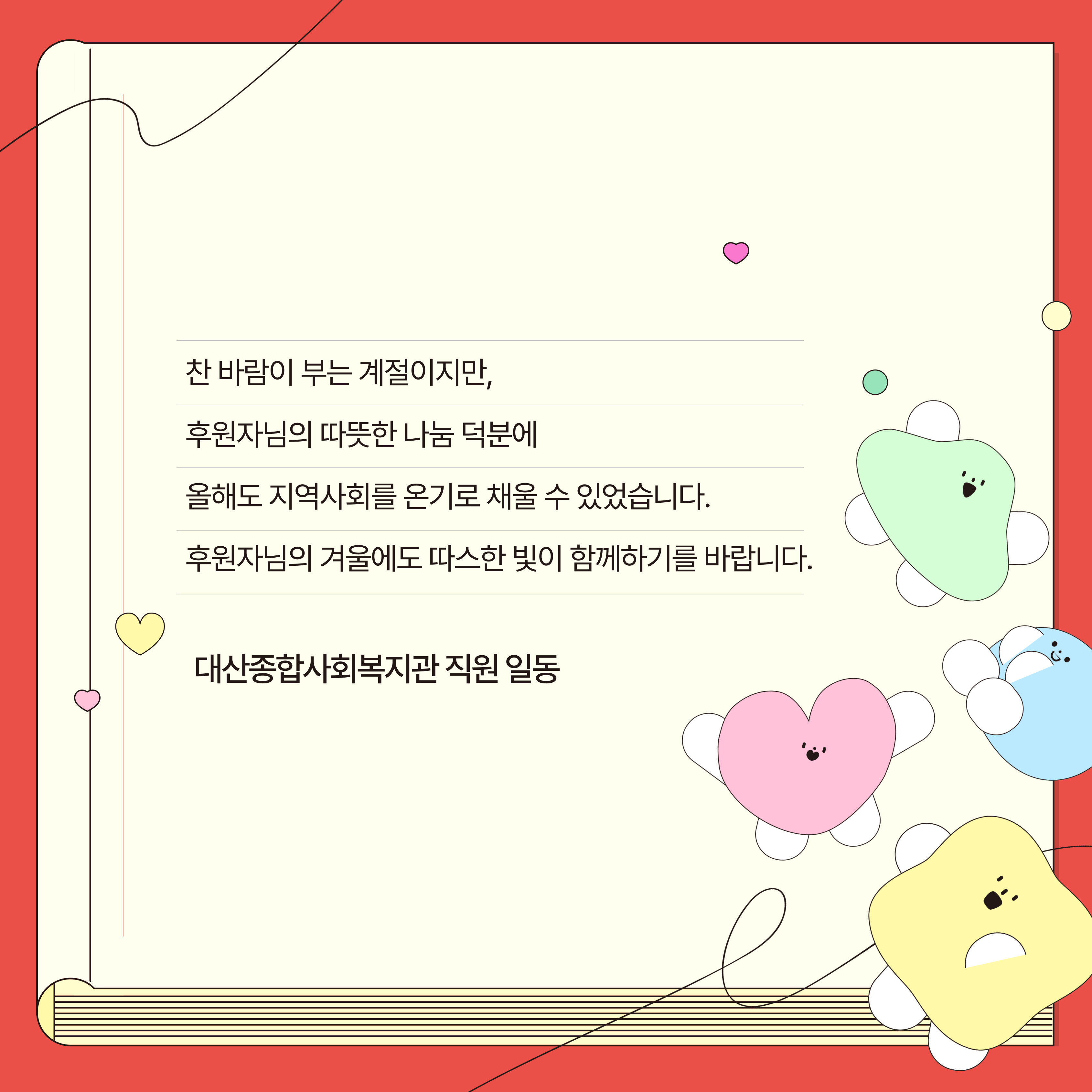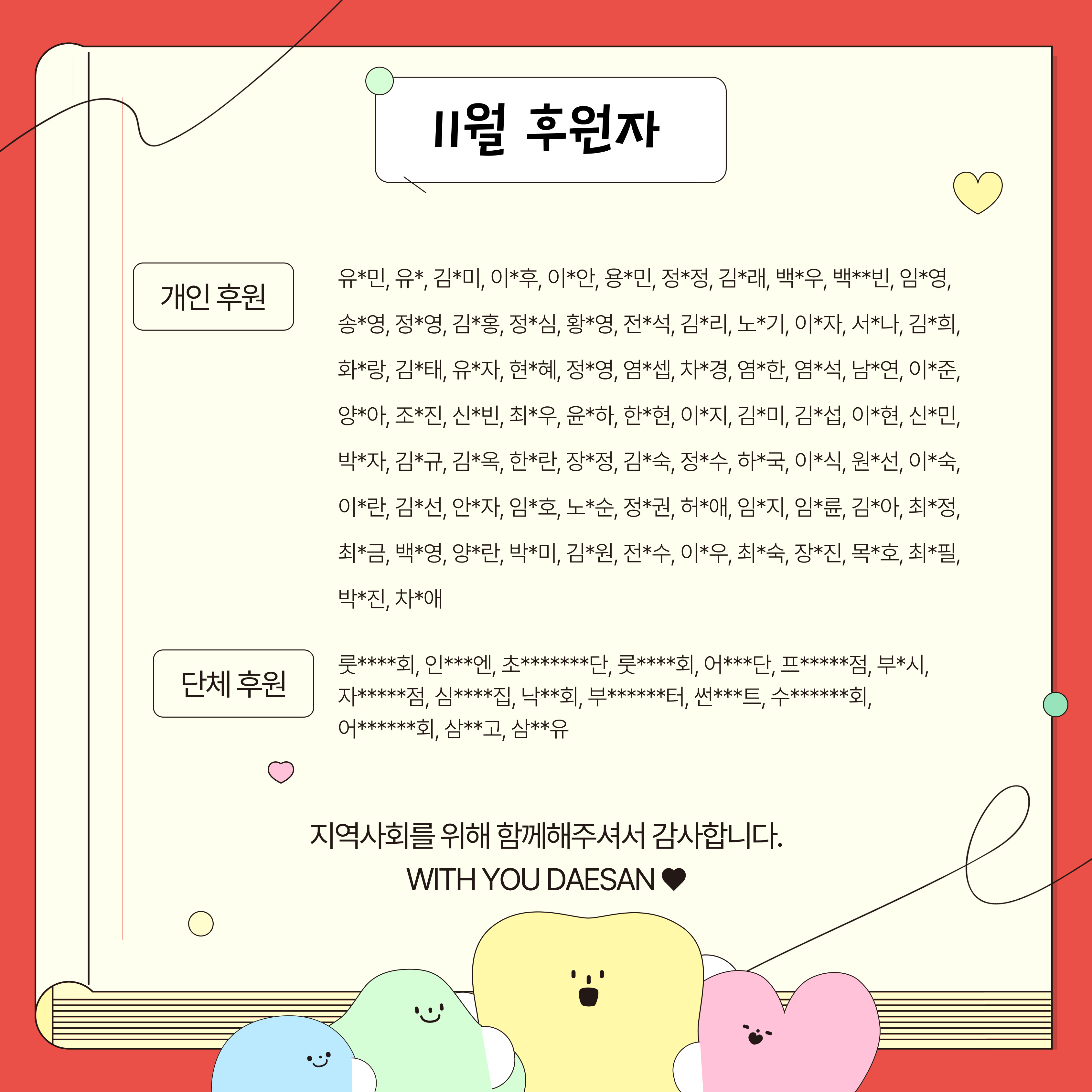 2025년 11월 대산종합사회복지관 후원에 감사드립니다.